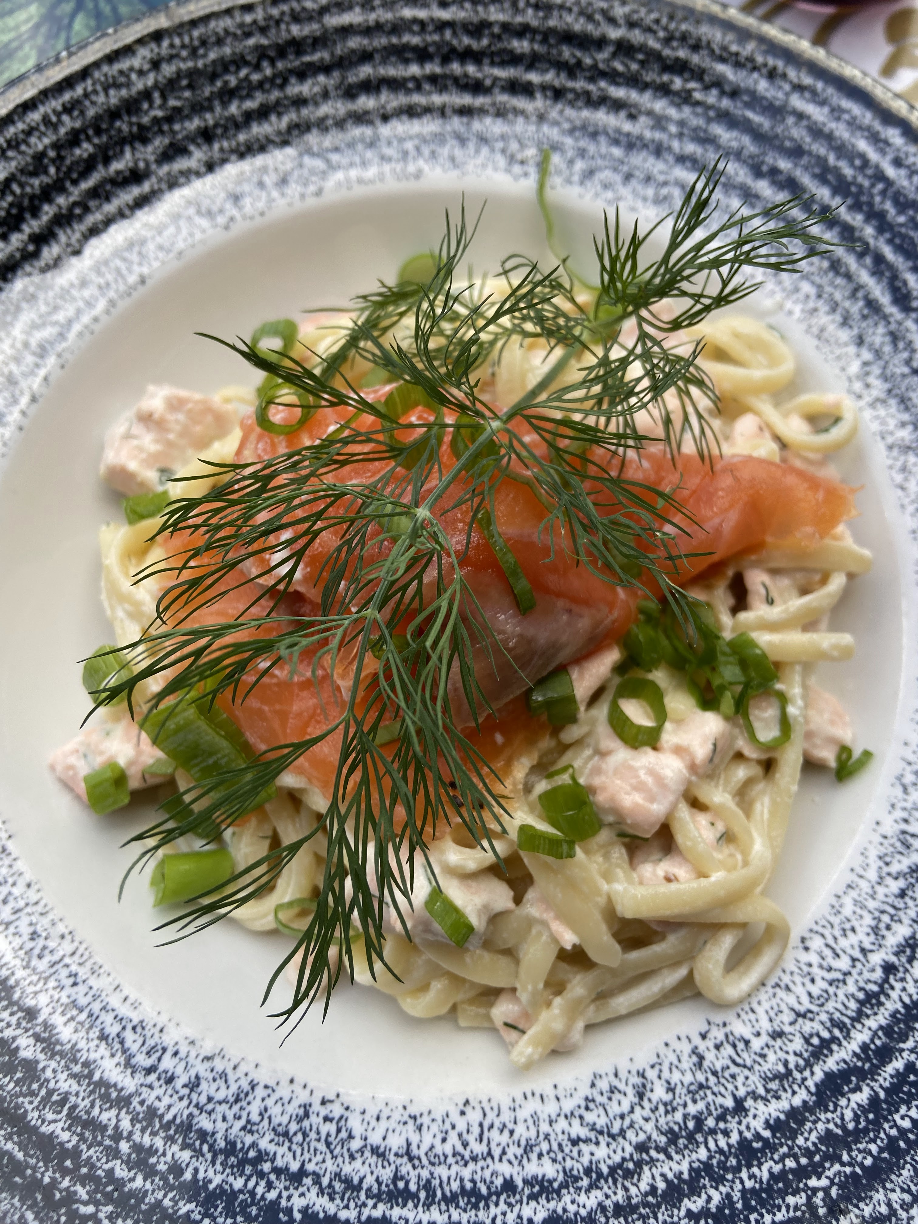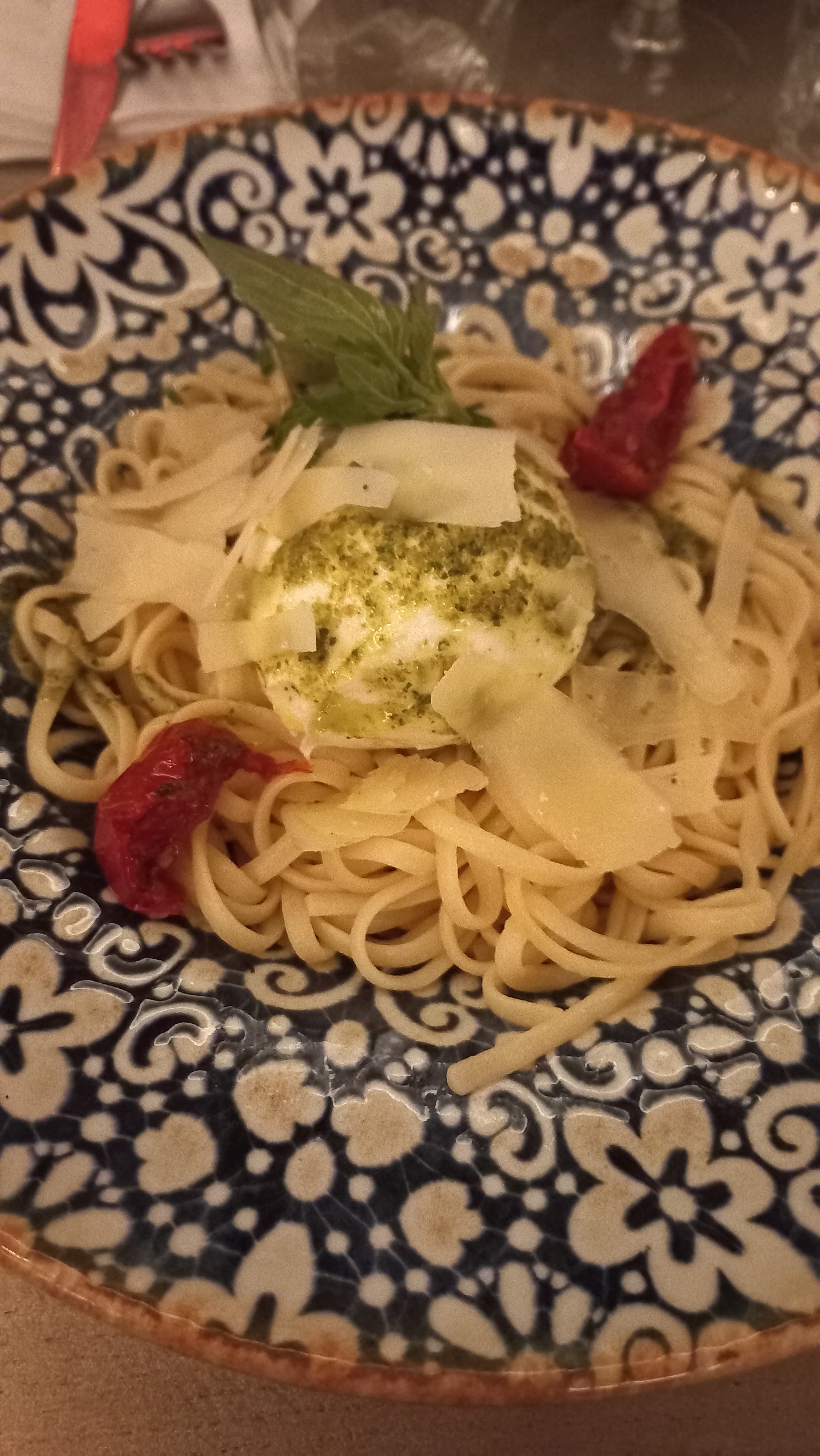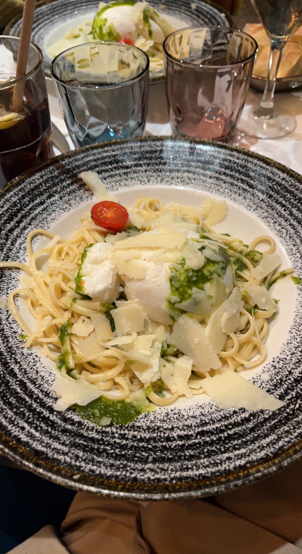 L'ambiance est très sympa, très beau décor. Le personnel accueillant, et a l'écoute. On a commandé des pattes pesto (le pesto n'était pas trop présent), au saumon, une salade.