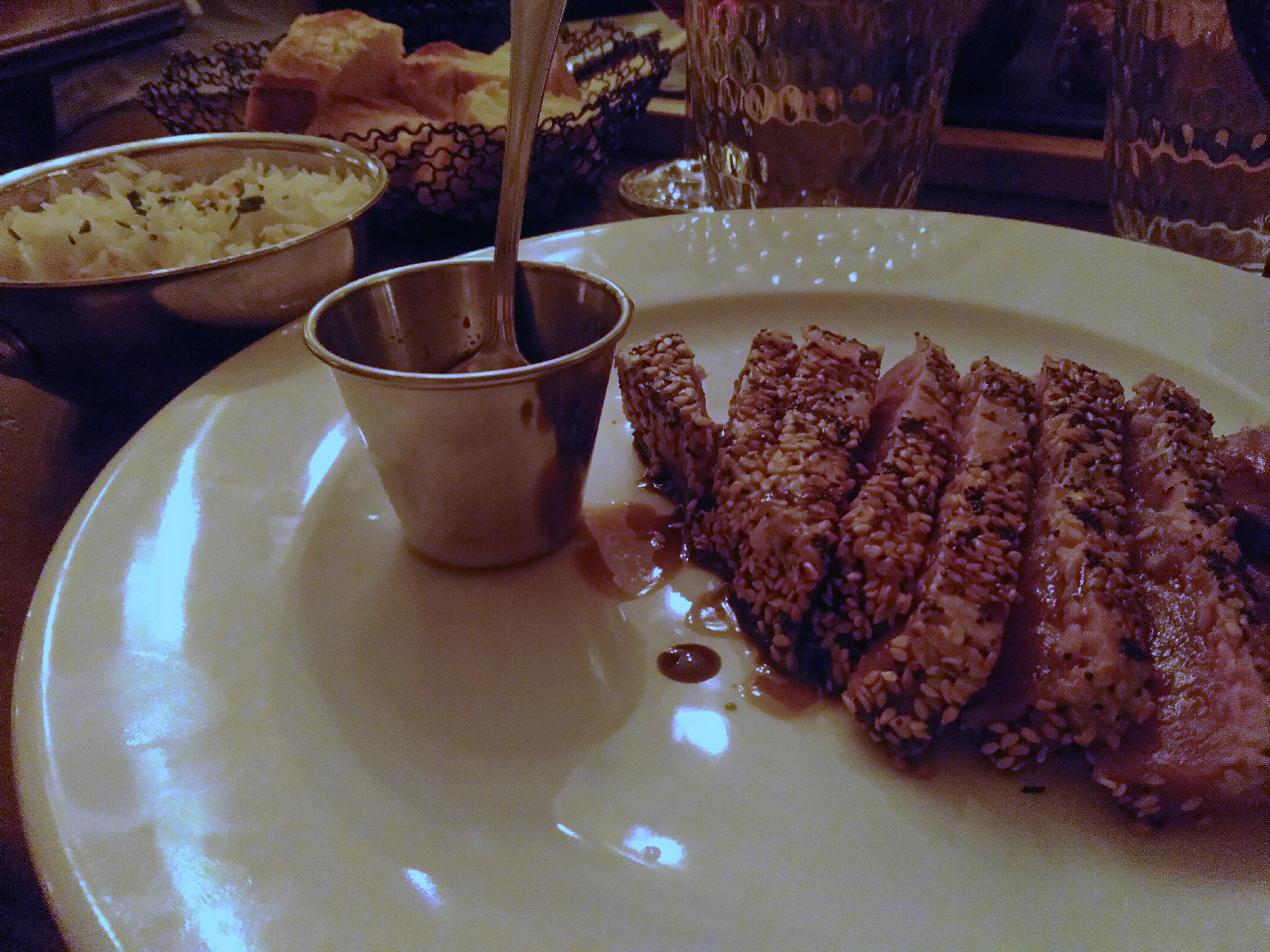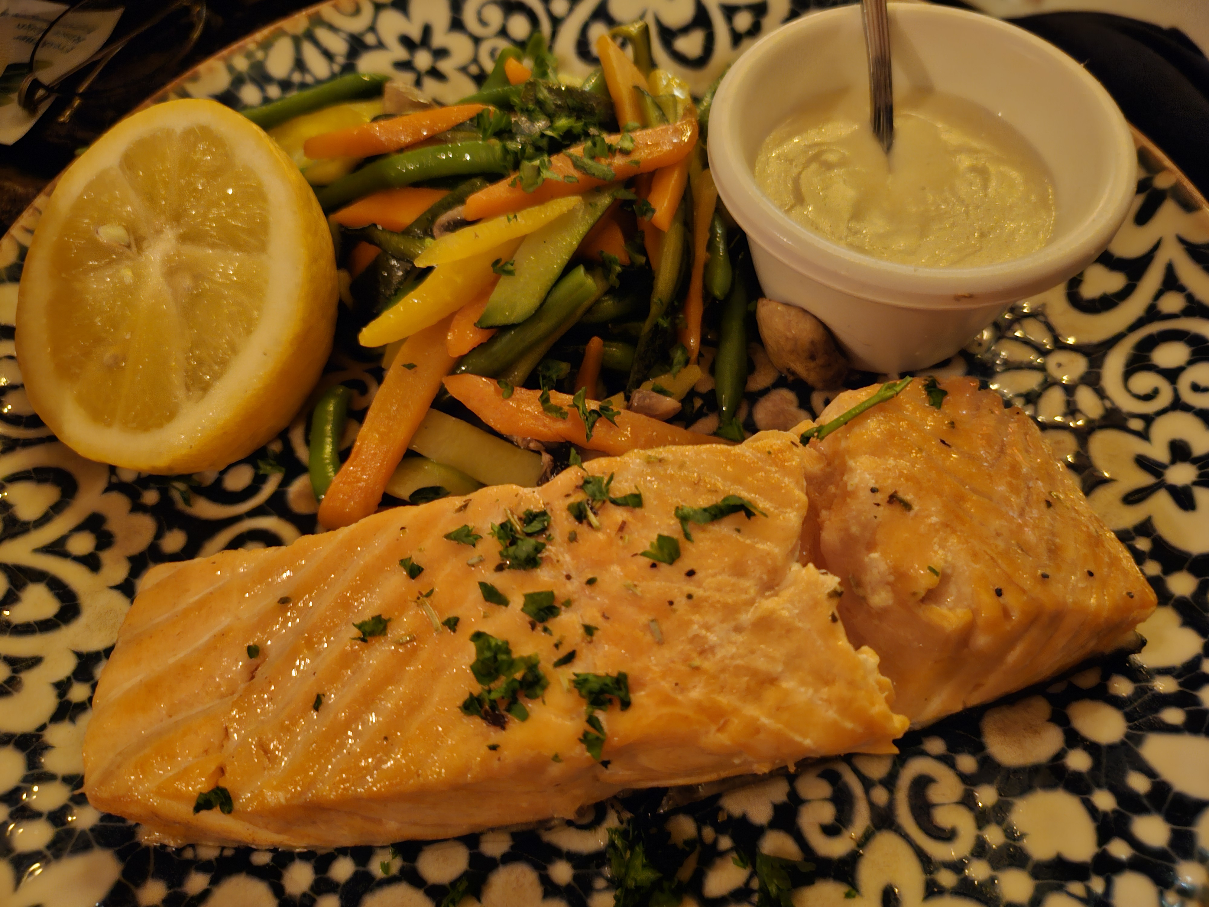 J'essaie de ne jamais manger deux fois dans le même restaurant pendant mes vacances. Nous avons mangé ici deux fois. Le saumon était le meilleur que j’ai jamais mangé et la soupe à l’oignon est la meilleure que nous ayons essayée en ville. Le faux-filet de mon mari a presque fondu dans sa bouche. Le hamburger qu'il a mangé lors de sa première visite était superbe.