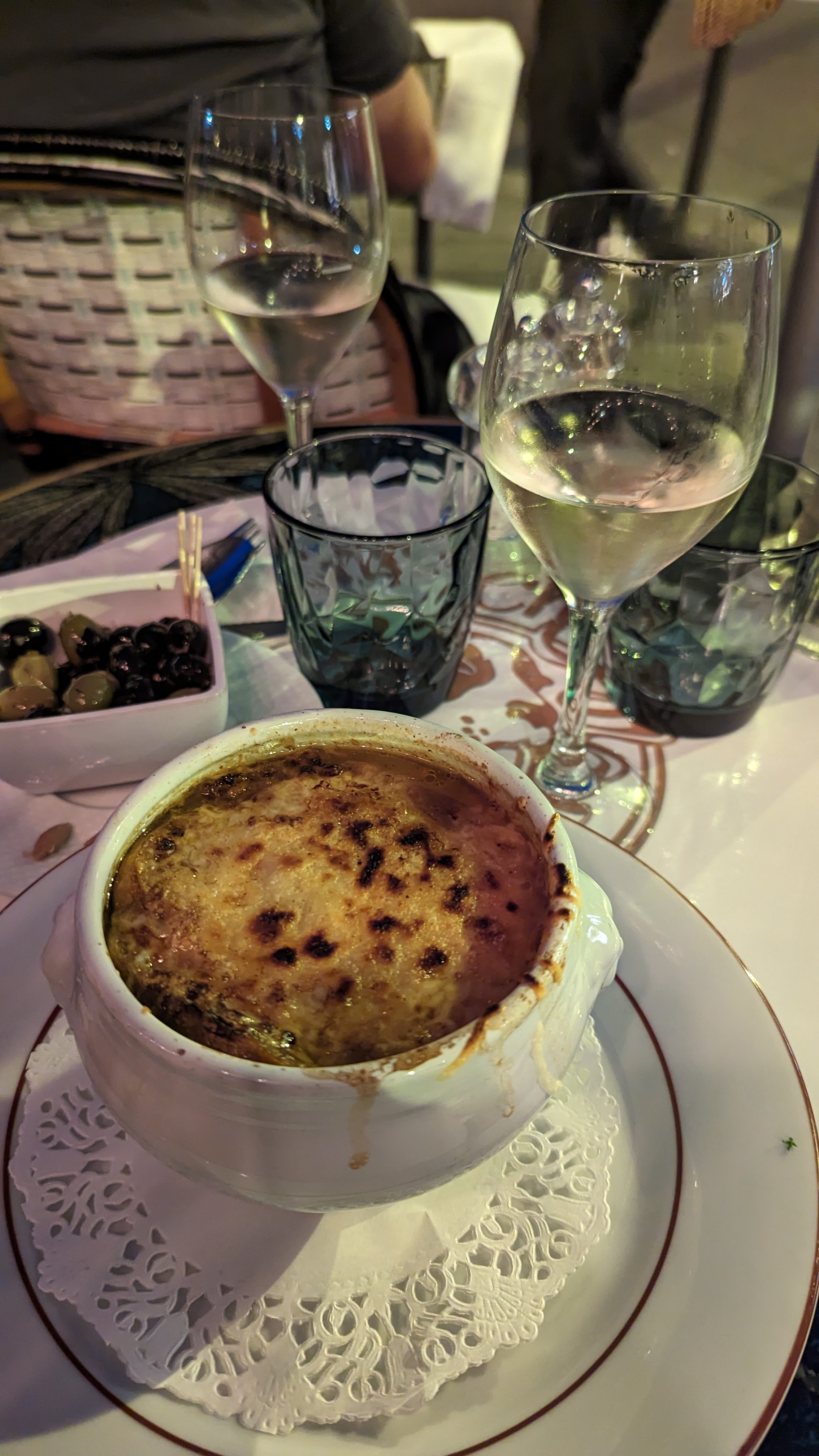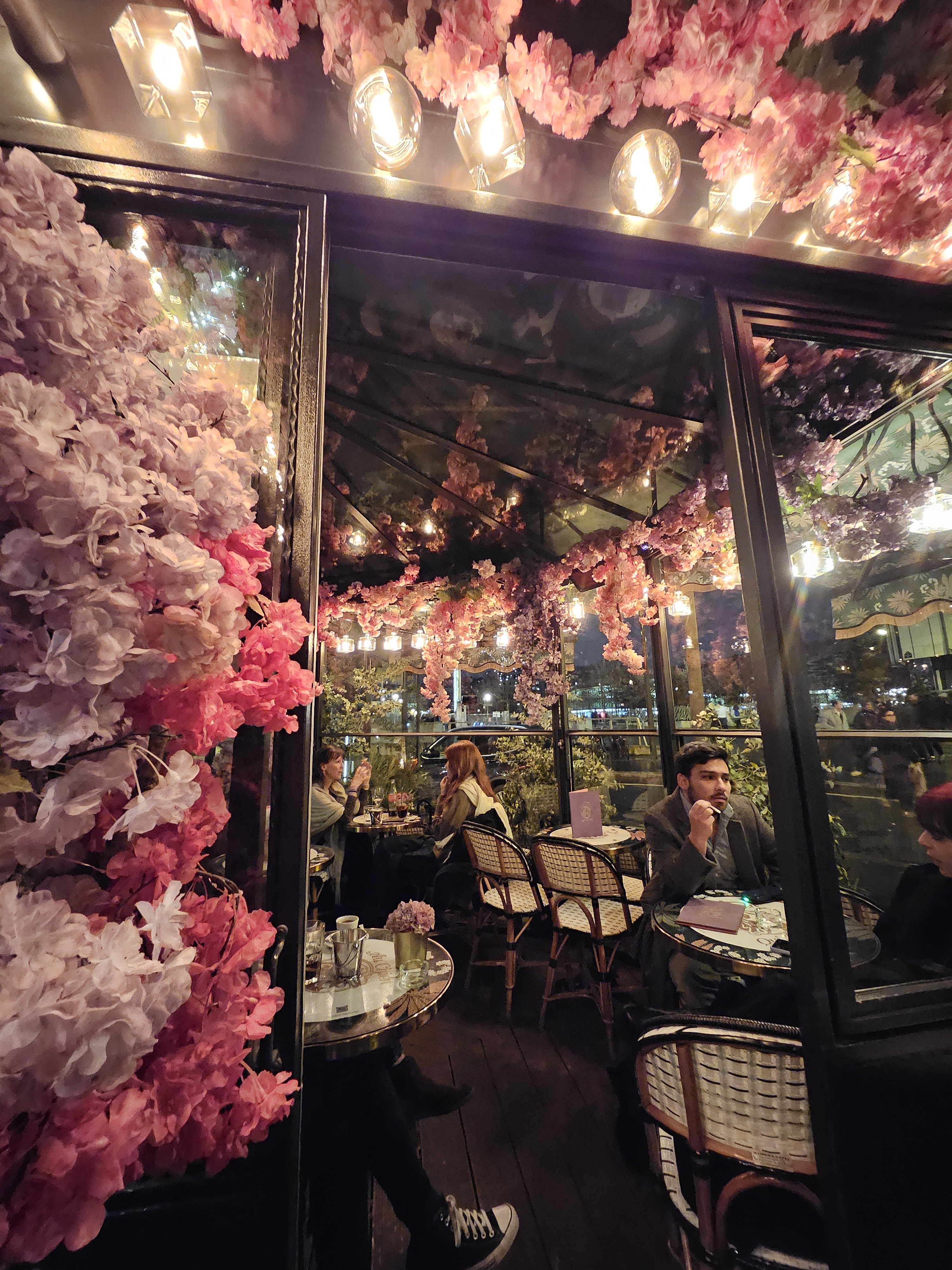 Pause rapide dans ce lieu mythique où je dégustais il y a 30 ans déjà leur bonne soupe à l’oignons gratinée à 5 h du mat en sortie de boîte. Cette fois ci, un cocktail sans alcool, le Bora Bora. Délicieux !
