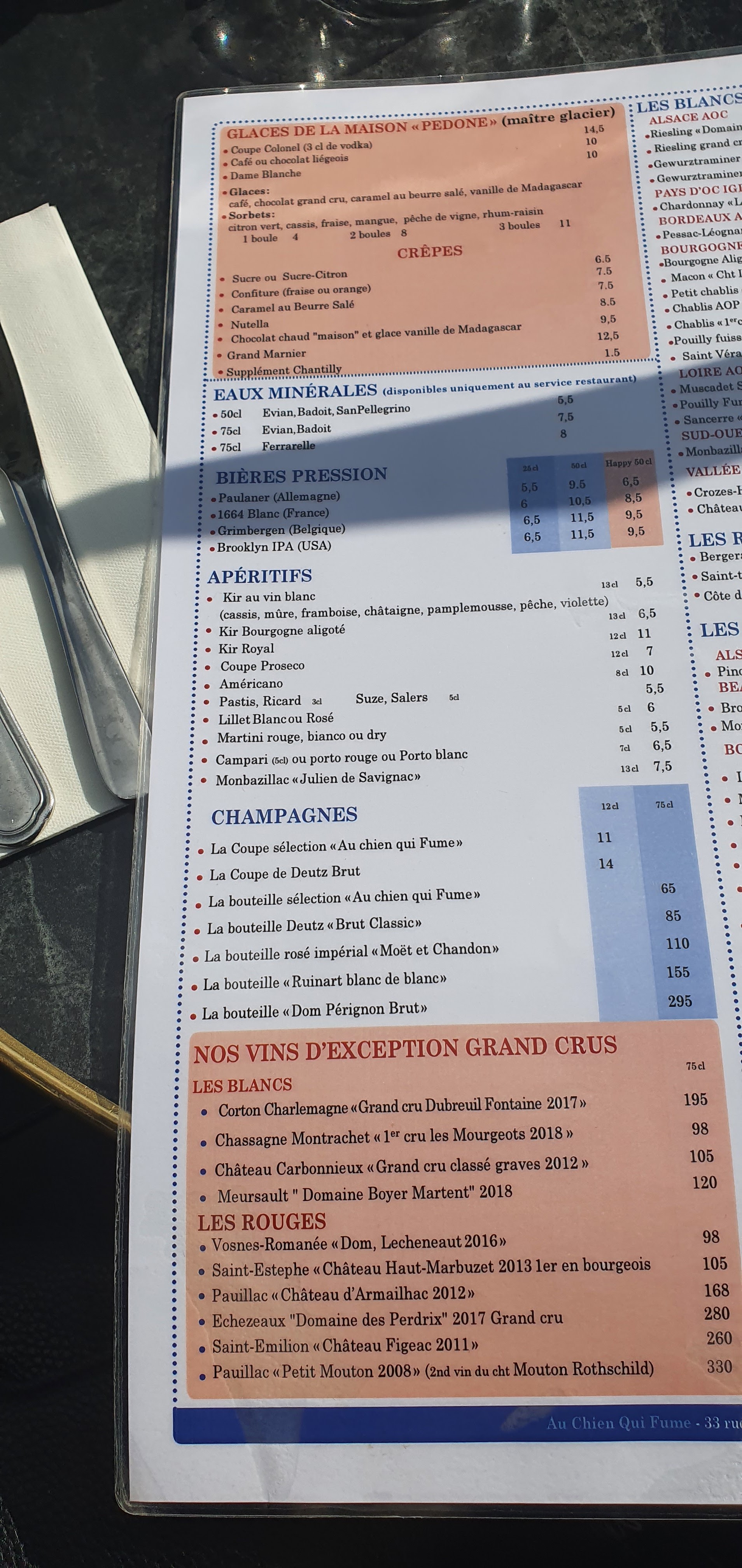 J'ai vécu une merveilleuse expérience il y a quelques jours chez Au Chien Qui Fume à Paris. Tout était parfait : la nourriture était délicieuse, l'ambiance charmante et le service de Nomane au top ! Il nous a très bien accueillis et a rendu notre visite l'une des meilleures à Paris !