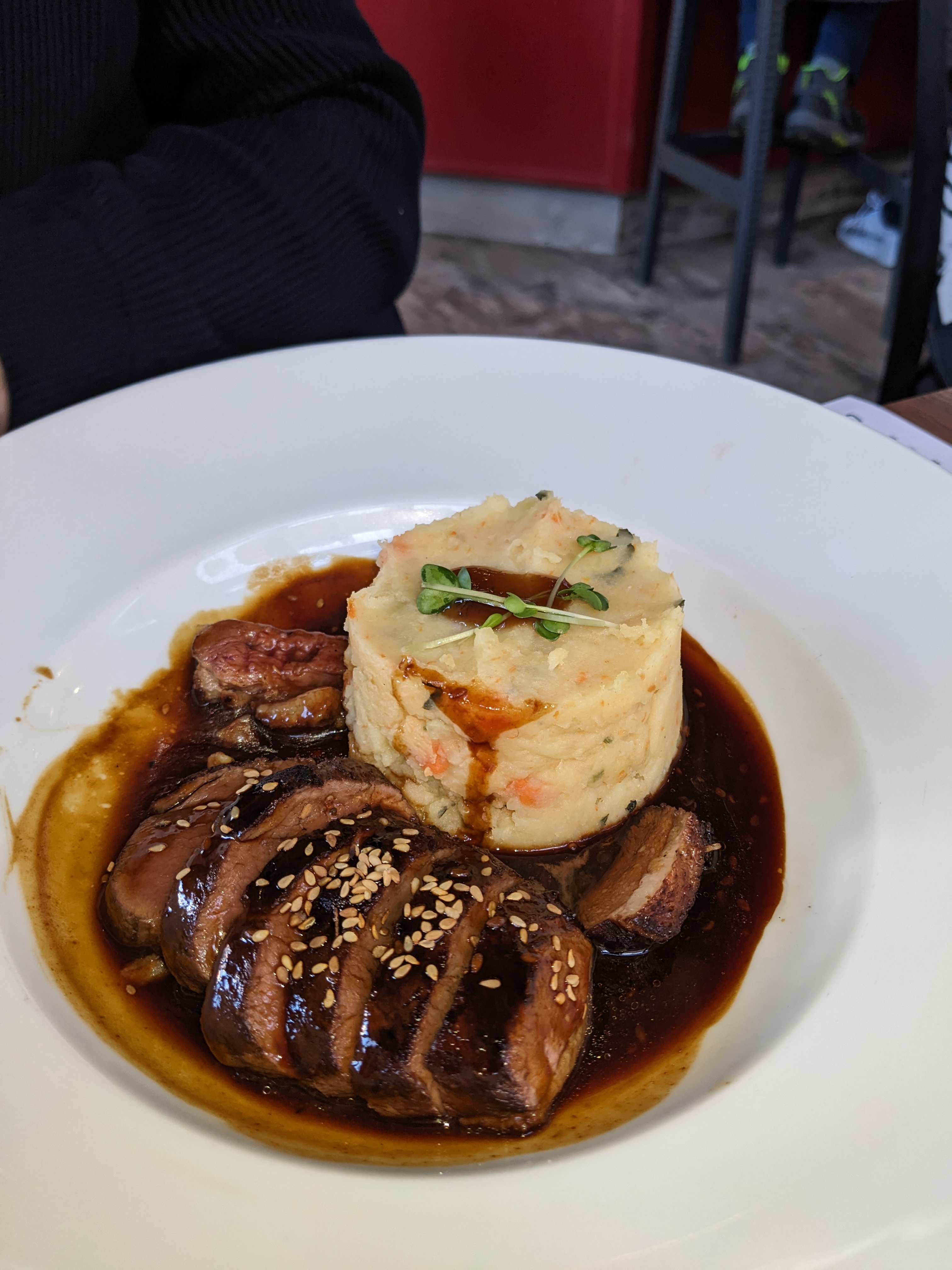 Venue il y a une semaine, viande rouge cuisson a point pour moi et saignante pour mon amie. 1er jet viande hyper saignante pour moi , retour en cuisine. 2 ème jet encore saignante. J'ai préféré la garder et manger ce que je pouvais pour ne pas regarder mon amie manger ...le but si on vient au restaurant c'est de manger ensemble. Aucun geste au moment de payer . Apparemment demander une viande rouge a point c'est problématique...