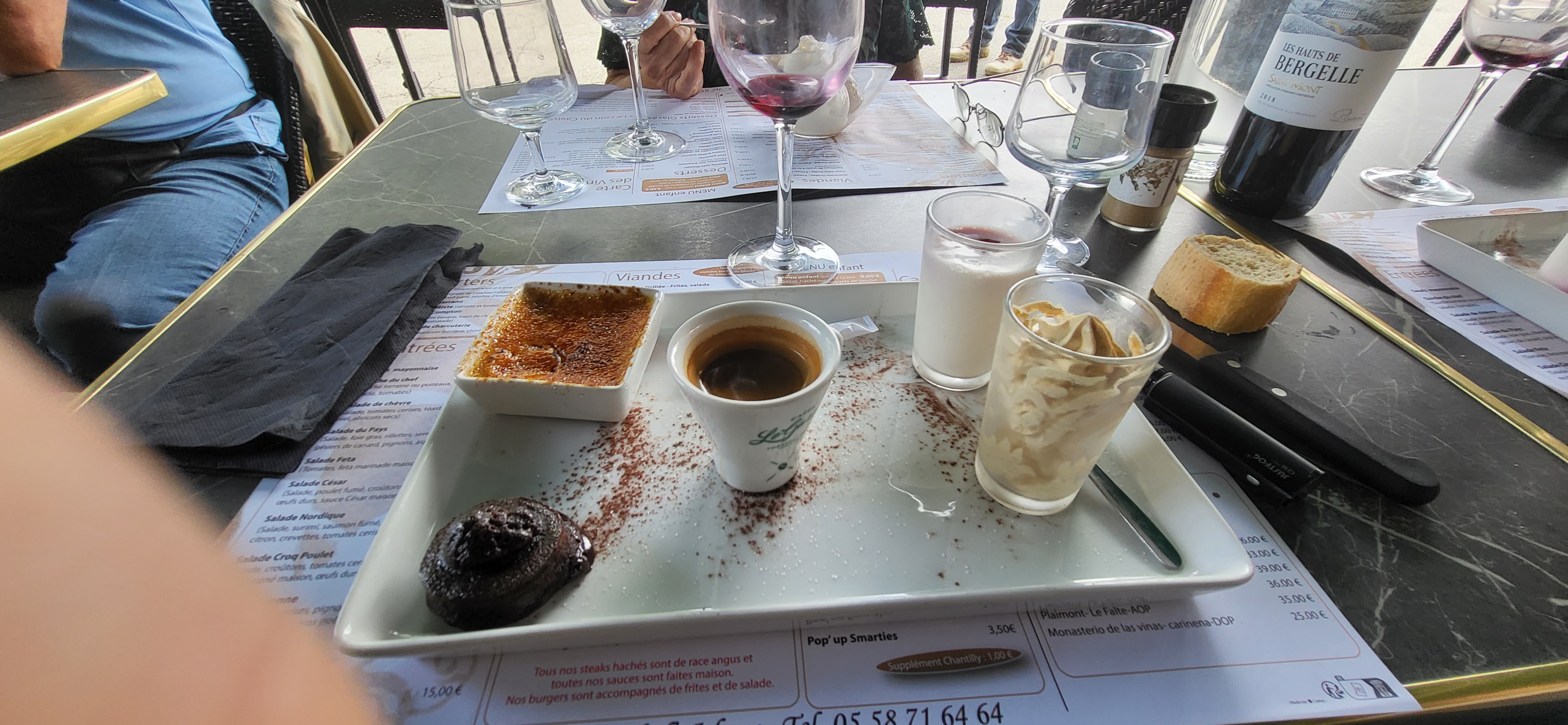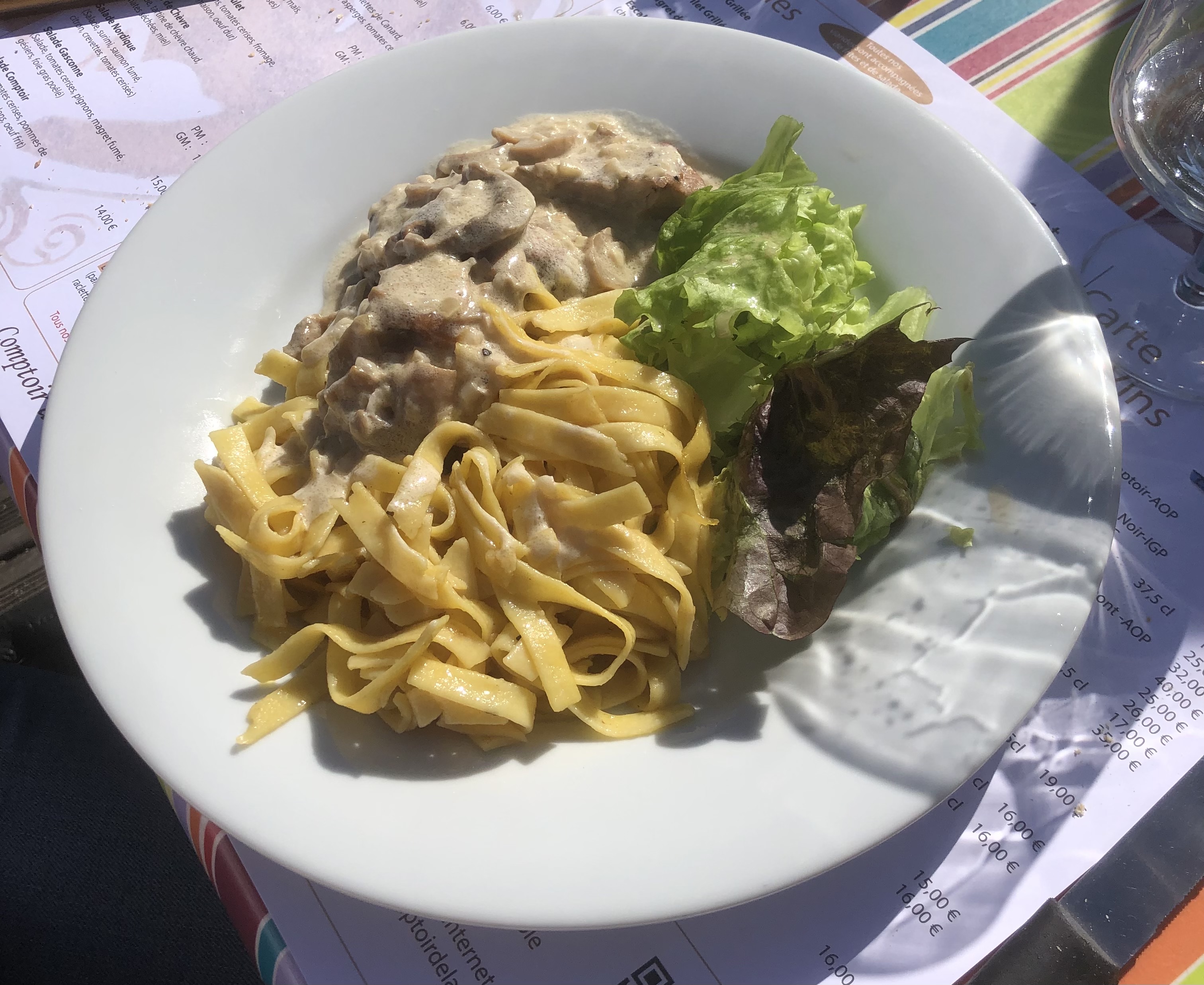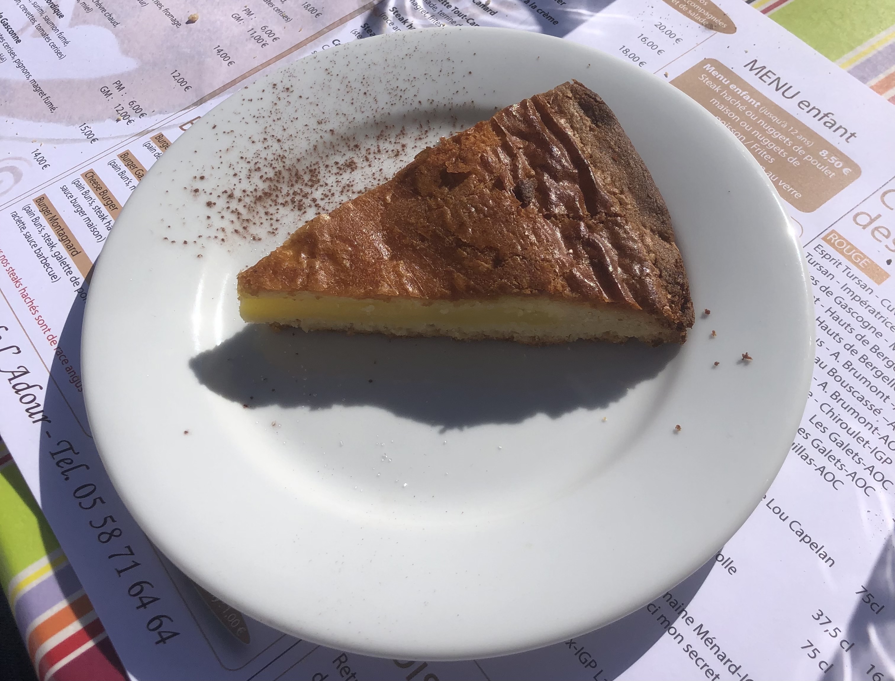 Nous avons fait une halte à Aire sur l'Adour afin de boire un verre. Nous avons été servis par une charmante serveuse très professionnelle. Cette dernière souffrait a priori d'un lumbago et travaillait malgré une évidente douleur intense. Bravo à elle.