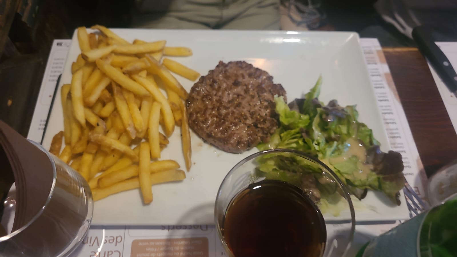 Je suis venue avec ma compagne, l’assiette été très copieuse, la viande vraiment très bonne, les frites également, je n’ai pas pu finir mon plat car le bout de viande est généreusement servi. J’ai pris une entrée, des bricks aux veaux, délicieux avec sa sauce champignons. Le service est rapide, très gentille. Je recommande sans hésitation cette brasserie qui a en plus de cela beaucoup de charme.