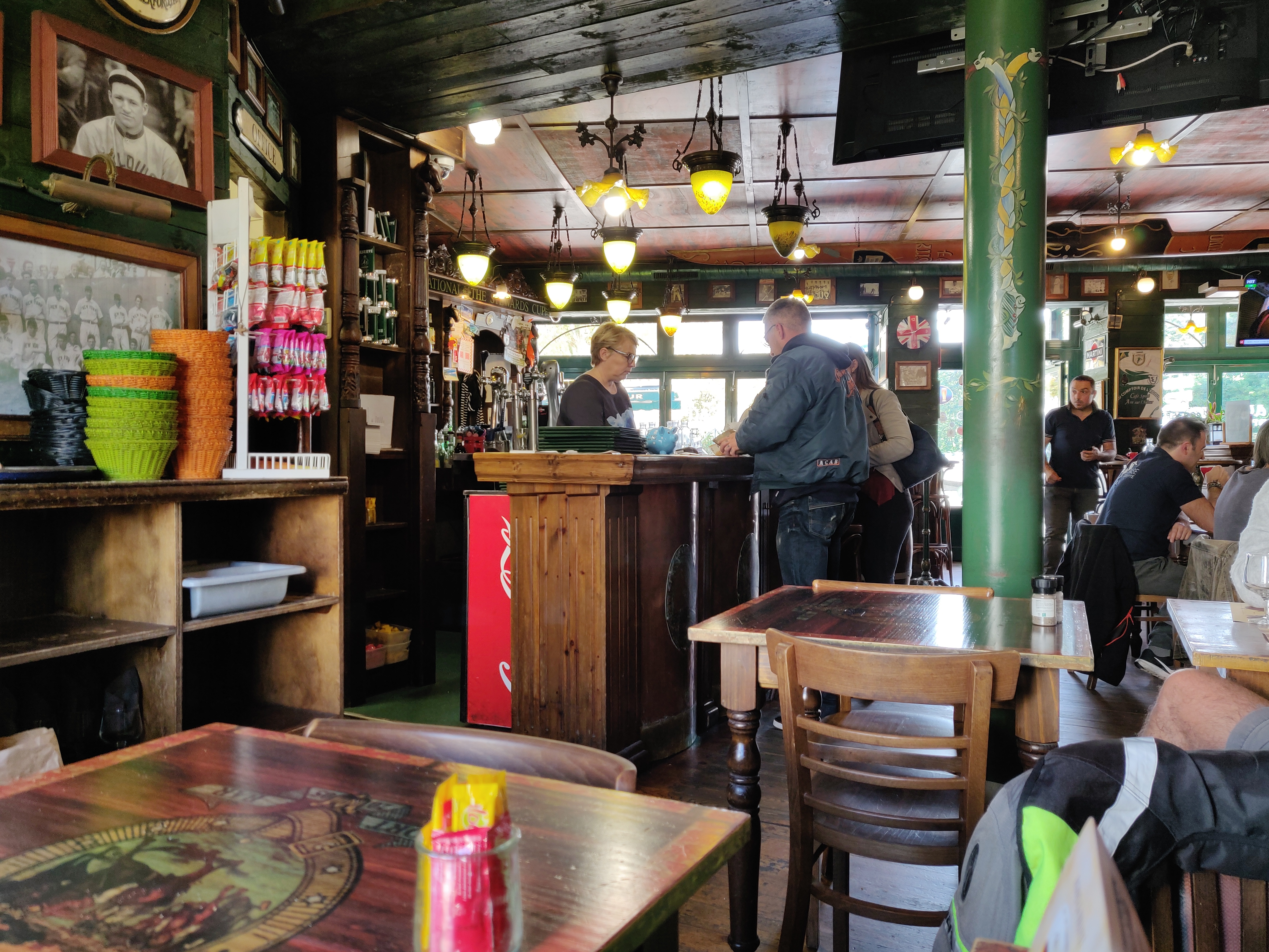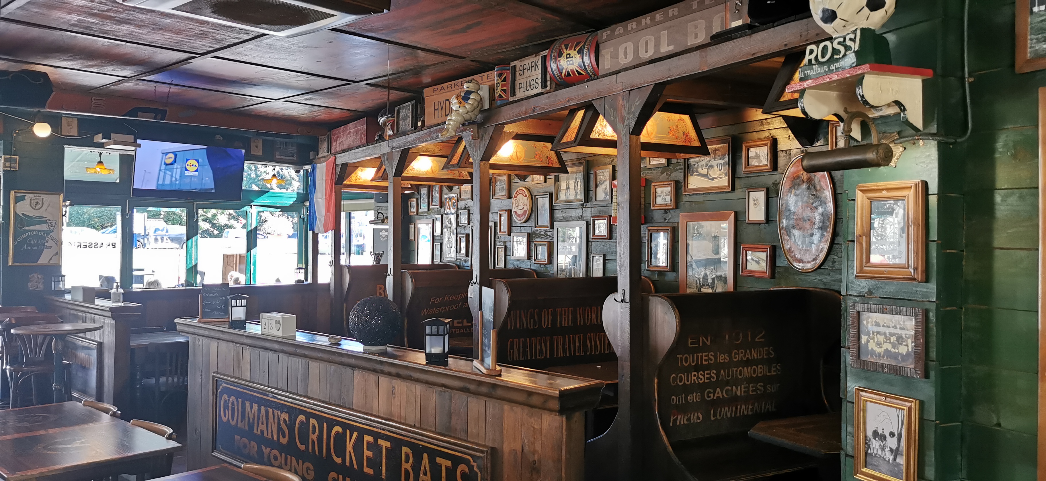Joli pub/restaurant de nostalgie sportive. Nourriture et service très bons