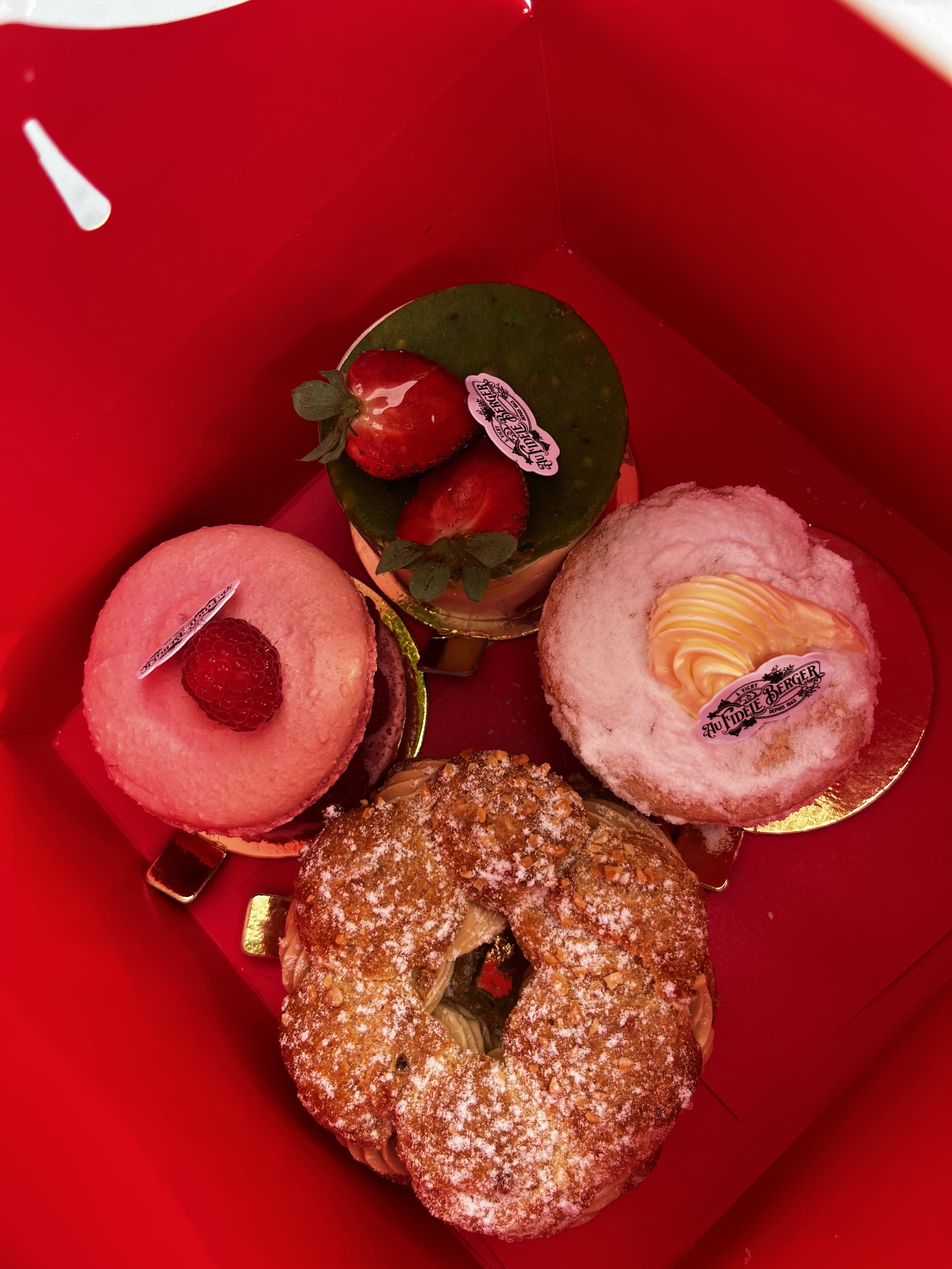 Je me promenais dans Vichy et j’ai été attiré par le charme old school à la Française de l’endroit et puis j’ai vu les pâtisseries 😍 donc je suis rentré. Le macaron est à tomber et le fraisier est excellent. Bravo! J’ai été bien accueilli et c’est aussi joli à l’intérieur qu’à l’extérieur. J’ai lu pas mal de commentaires négatifs qui parlent de comparaisons avec avant, des nostalgiques? J’en sais rien. Je n’ai pas l’historique mais ce que j’ai vu et goûté c’était 5 étoiles!