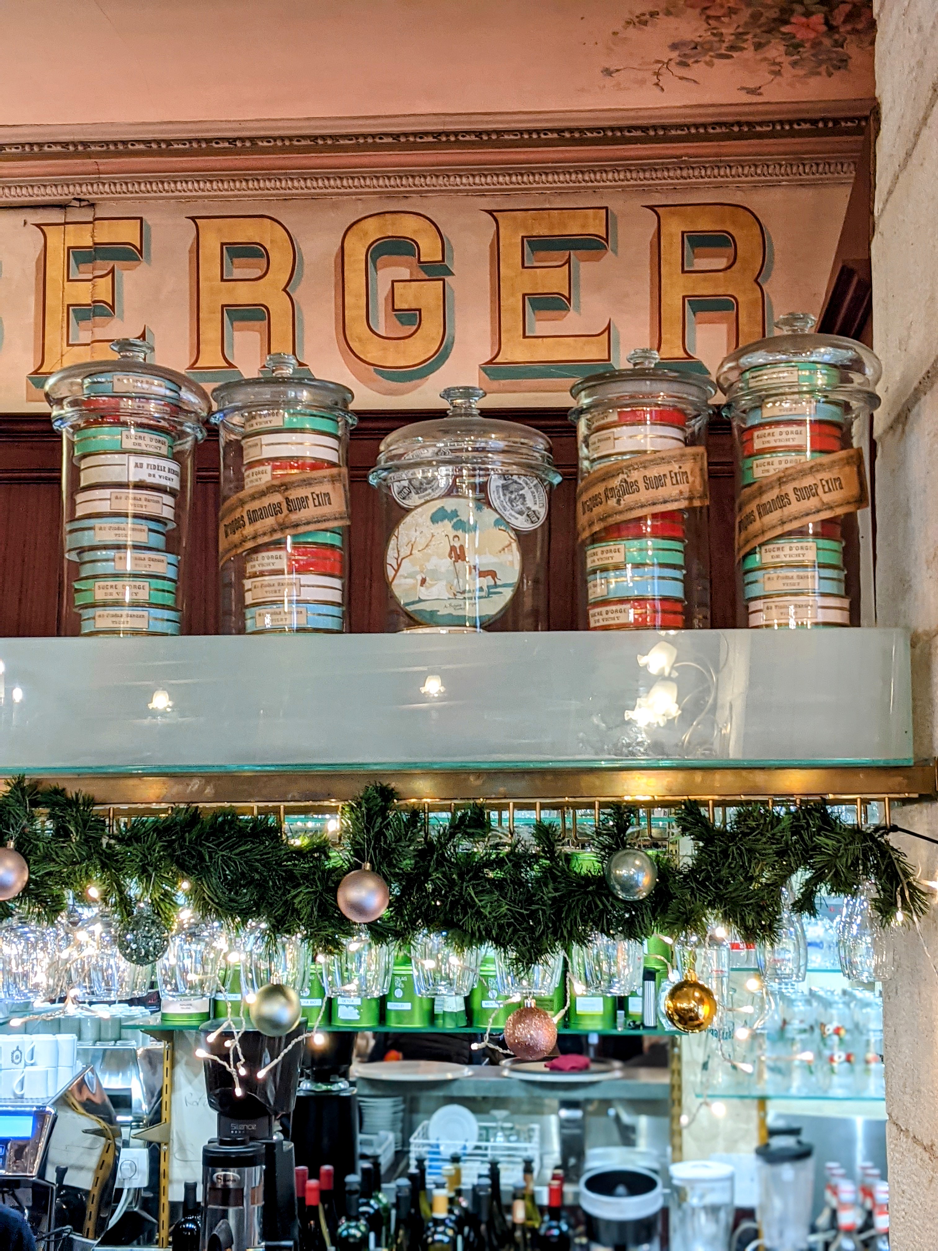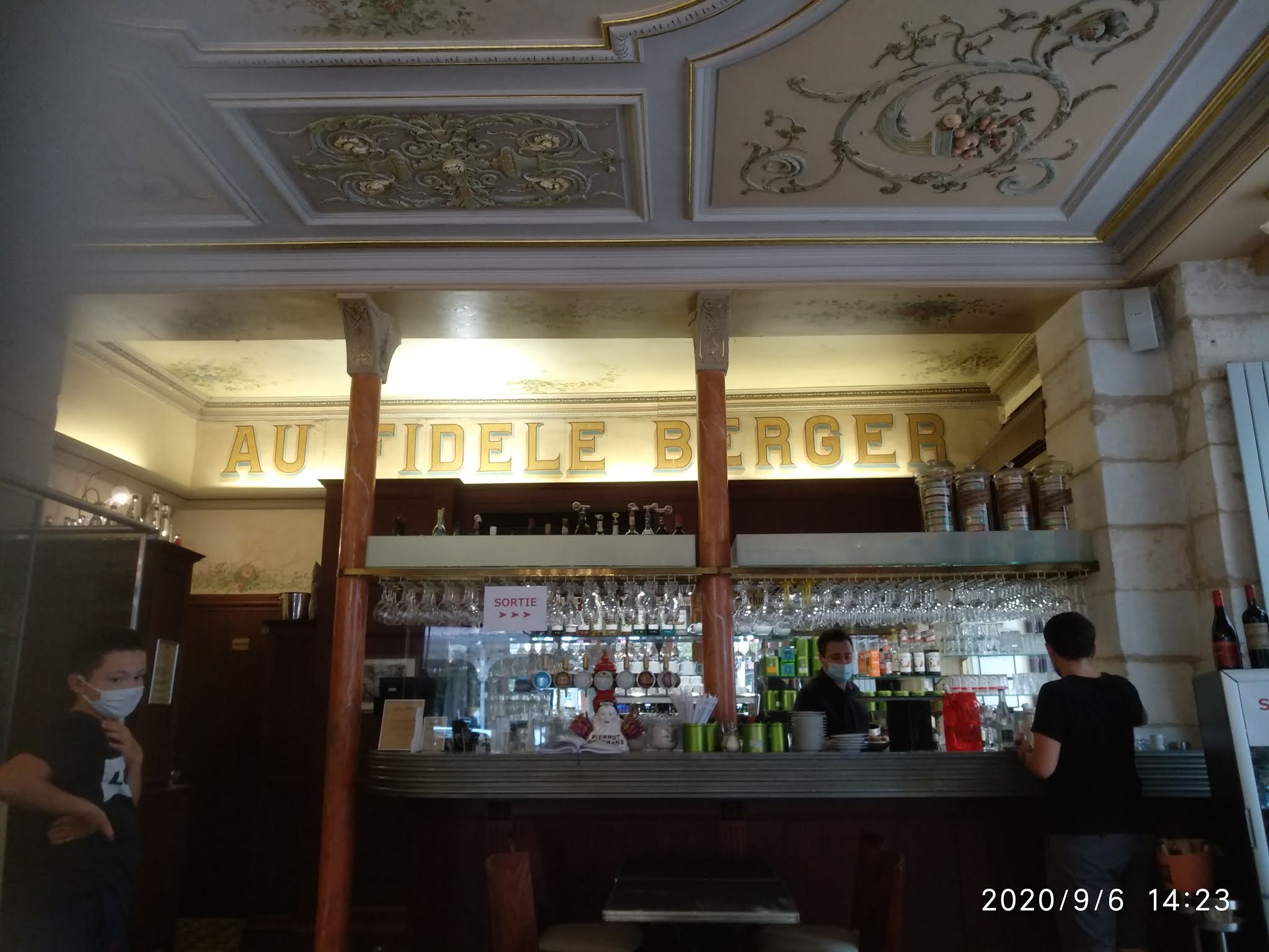 C'est un endroit très intéressant à plusieurs titres. Au Fidèle Berger est l’une des boutiques les plus anciennes de Vichy (1863). Établissement emblématique de la station thermale. Le Fidèle Berger mise sur l’élégance comme à la Belle Époque, quand le chic parisien s’imposait à la France entière. Colonnes en pierres polies, décors moulurés et colorés au plafond, arabesques florales peintes sur les murs, miroirs réfléchissants les lumières du majestueux lustres aux 20 bougies, sols en carreaux de ciments… La devanture aux tons marron n'est pas vraiment attirante malgré une enseigne à la belle calligraphie et aux lettres dorées. C'est aussi un café, une brasserie et un salon de thé de bonne tenue. L'établissement possède une terrasse du côté du parc ce qui est bien agréable. Les tables n'ont pas de nappes et de serviettes en tissu. Un set de table en papier sert de porte-menu. Serviette en papier épais, couverts et verrerie de qualité et chaises confortables, espace entre tables respectable complète le tableau. La carte permet de répondre à l'attente de tous. Les plats servis sont copieux et de qualité. Les desserts maisons excellents. Accueil chaleureux envers nous, bien que le rappel à l'ordre pour le port du masque est plutôt véhément envers certains étourdis (Covid oblige!). L'établissement accepte les chiens et propose spontanément un bol d'eau.