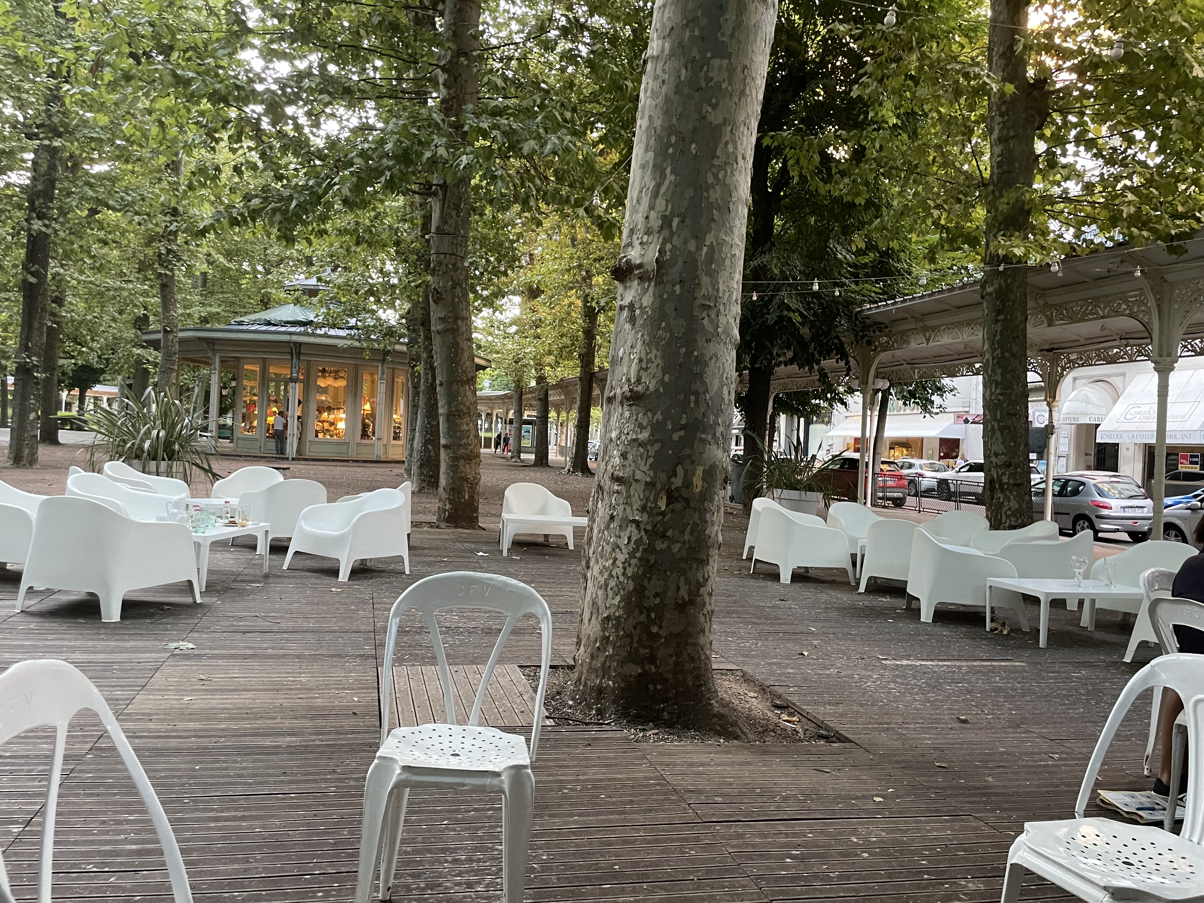 Soupe à l'eau (aucun goût) à 10€ Guiche salade affichée en vitrine à 9,50€ Le soir réglé à 13,50€ ( panneau de l'après midi non enlevé !!!!) Charcuterie quelconque de bas de gamme au prix fort..... Le cadre est joli et des musiciens jouaient du jazz.... Il vaut mieux y aller pour un thé Pas du tout professionnel en restauration On n'y mettra plus les pieds......des curistes mécontents