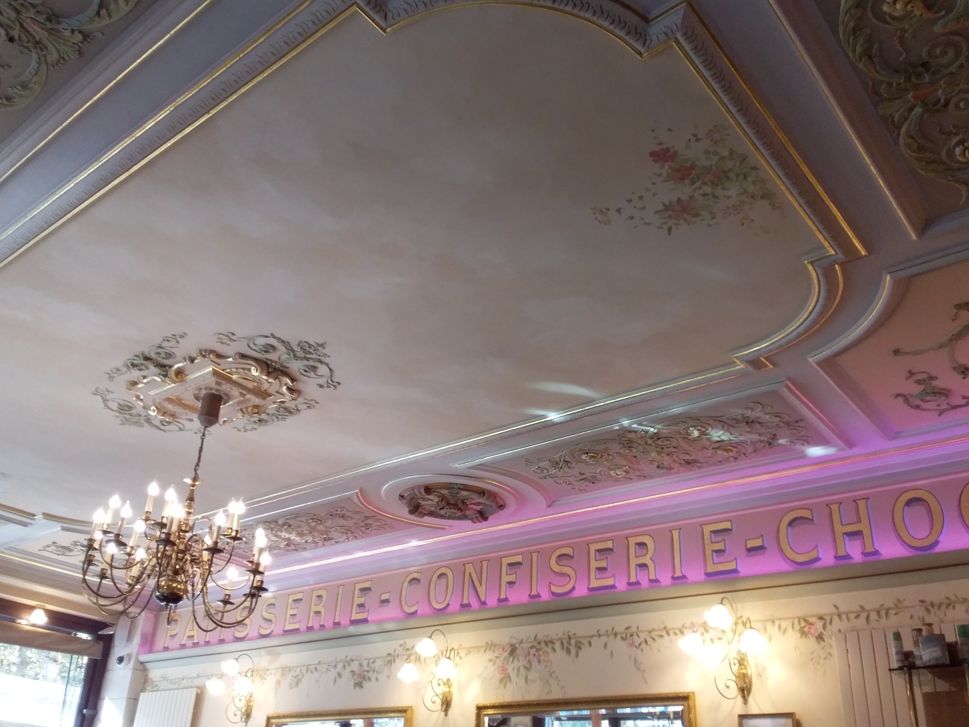 A part le plafond,rien a apprécier : tapis entrée pas nette, pâtisseries semblent pas fraîches,café insipide, serveurs peine aimables. Bien loin de la réputation ventée. Donc passez votre chemin