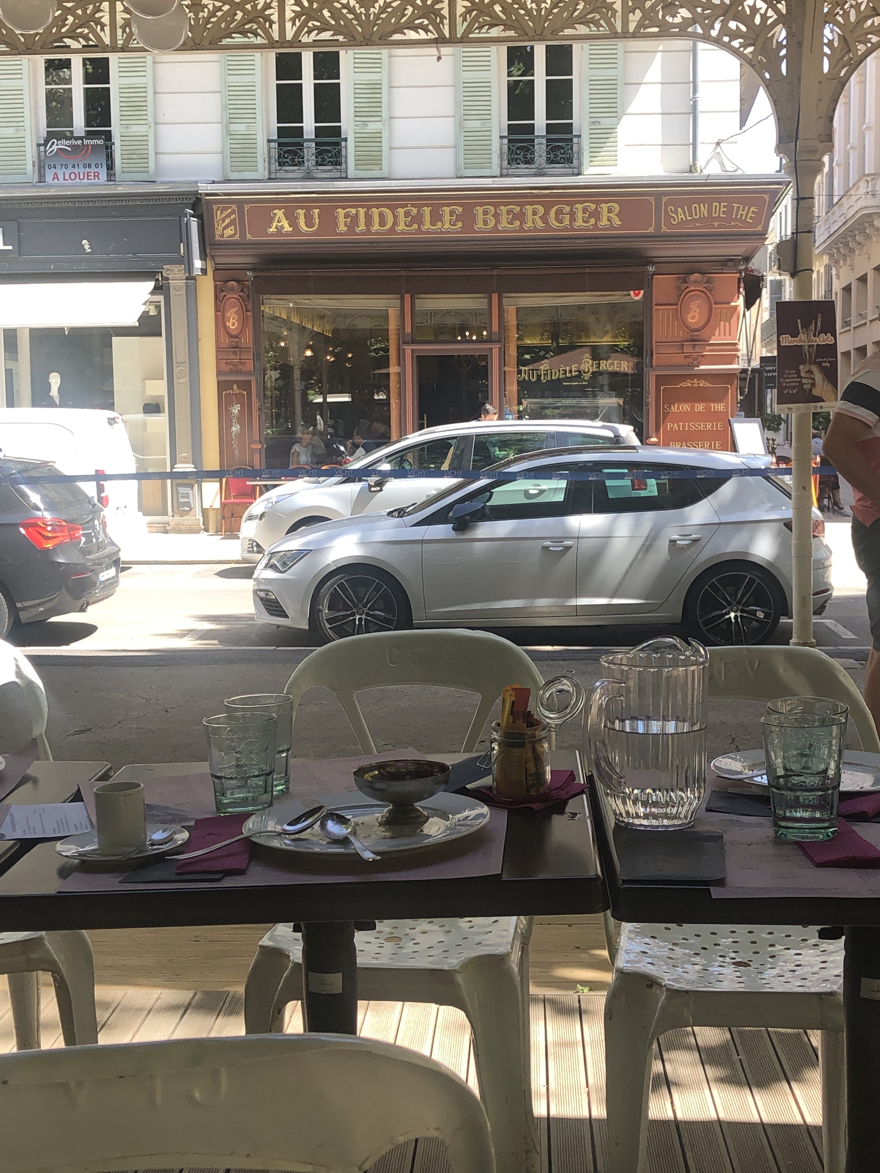 De mal en pis ! Le fondateur du Fidèle Berger doit se retourner dans sa tombe. Un des fleurons de part son architecture de Vichy, un des meilleurs salons de thé il y a quelques années est devenu un établissement où la cuisine servie est digne d’une brasserie de seconde zone. Mais la palme revient au personnel qui est « débordé « à 17 h OO pour servir la terrasse et qui refuse donc les clients alors que la salle intérieure est à moitié pleine et pas en service du soir, simplement en service limonadier ! Messieurs changez de métier et surtout lâchez cet établissement afin qu.il redevienne ce qu’il était avant son changement de propriétaire