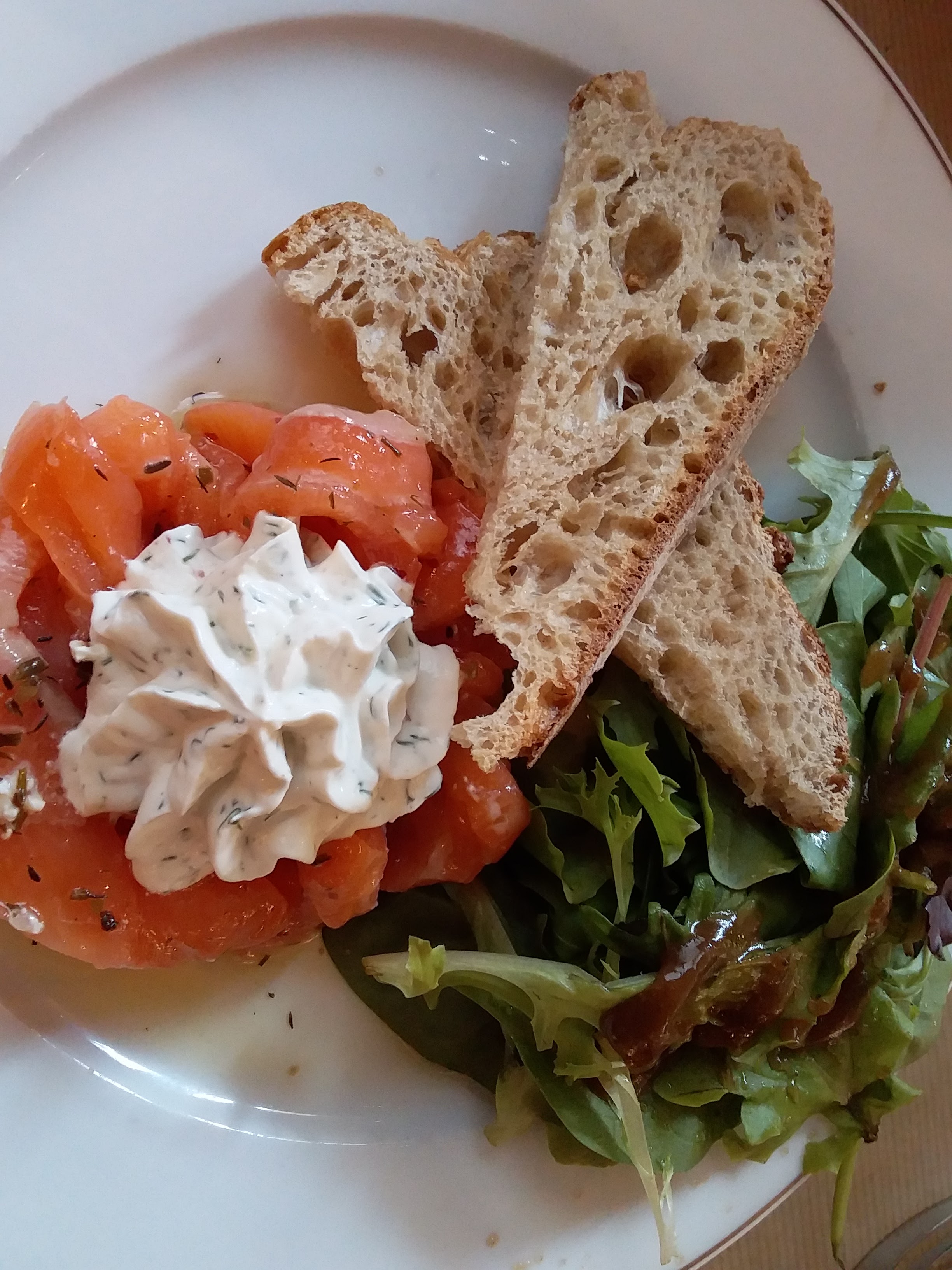 Bon repas même si je le trouve un peu élevé au niveau tarif. C'est agréable d'être en terrasse! Le matériel (chaises) est un château branlant ce qui n'est pas très agréable ! par contre la gamelle d'eau pour le chien c'est top. Je reviendrais sûrement goûter au thé et pâtisseries fait maison.