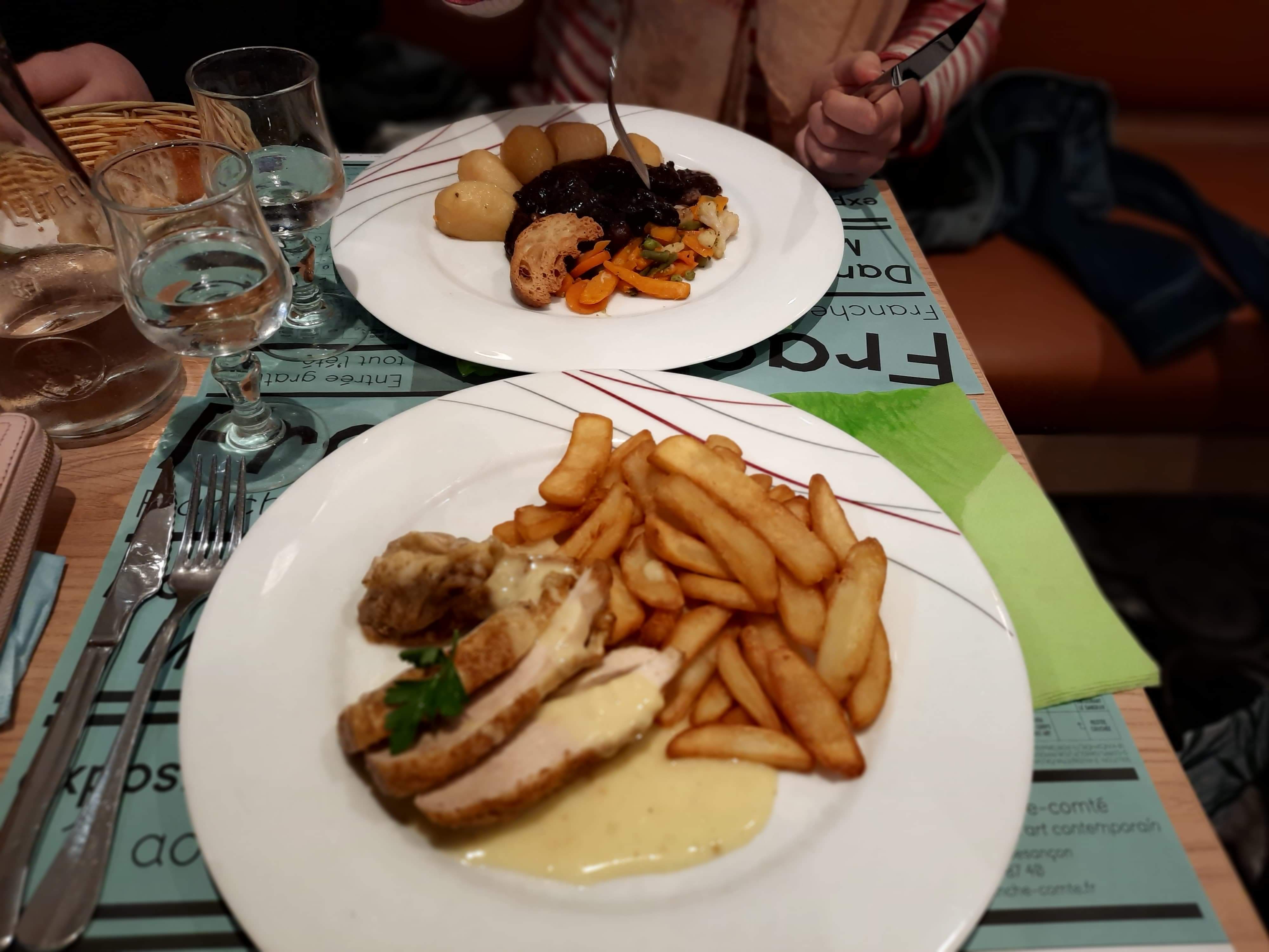 On est arrivé assez pressé vers 14h45 un dimanche avec un train à 16h. Le service était super, après avoir averti du peu de temps dont nous disposions, le serveur a lancé les plats des les entrées finies ! Des plats régionaux succulents :oeuf meurette en entrée et du bœuf bourguignon en plat. Une viande fondante, de la purée fraîche, une sauce onctueuse et brillante, un régal. Nous sommes sortis à 15h35 du restaurant, avec 2 services, un temps parfait sans avoir limpression de s'être dépêché. Ce restaurant est idéal car rapide, bon et situé en plein centre ville dans le cadre d'une belle place de Dijon. Je n'hésiterai pas à y retourner si je repasse sur Dijon.