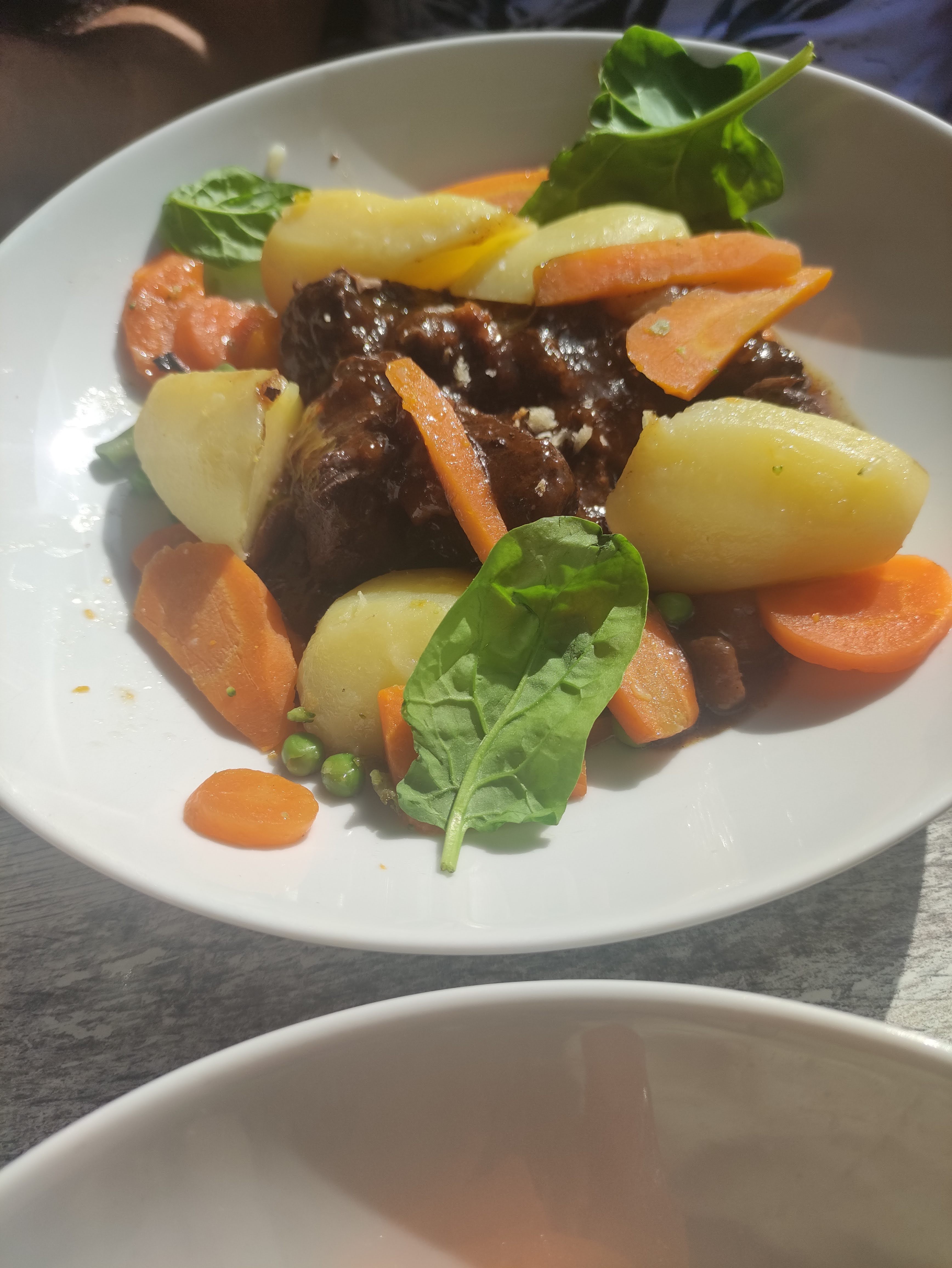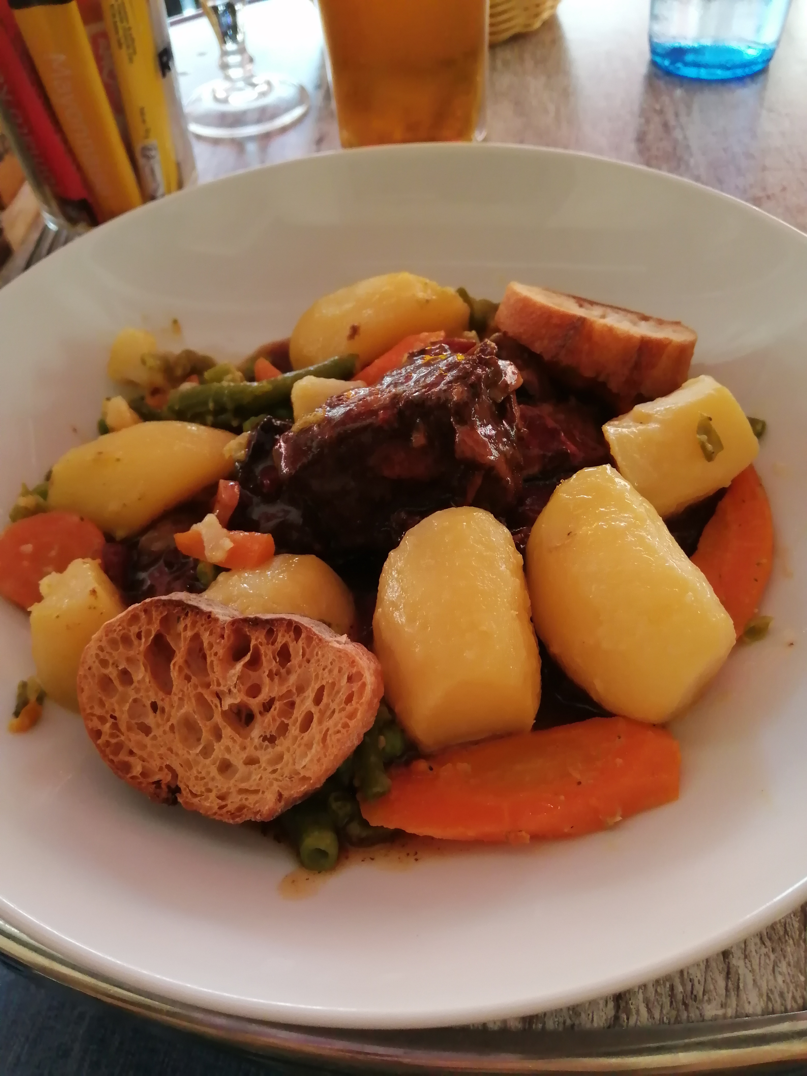 Je suis arrivée un peu tard et aucun soucis pour déjeuner. Bœuf bourguignon très fondant. Une serveuse très sympathique.
