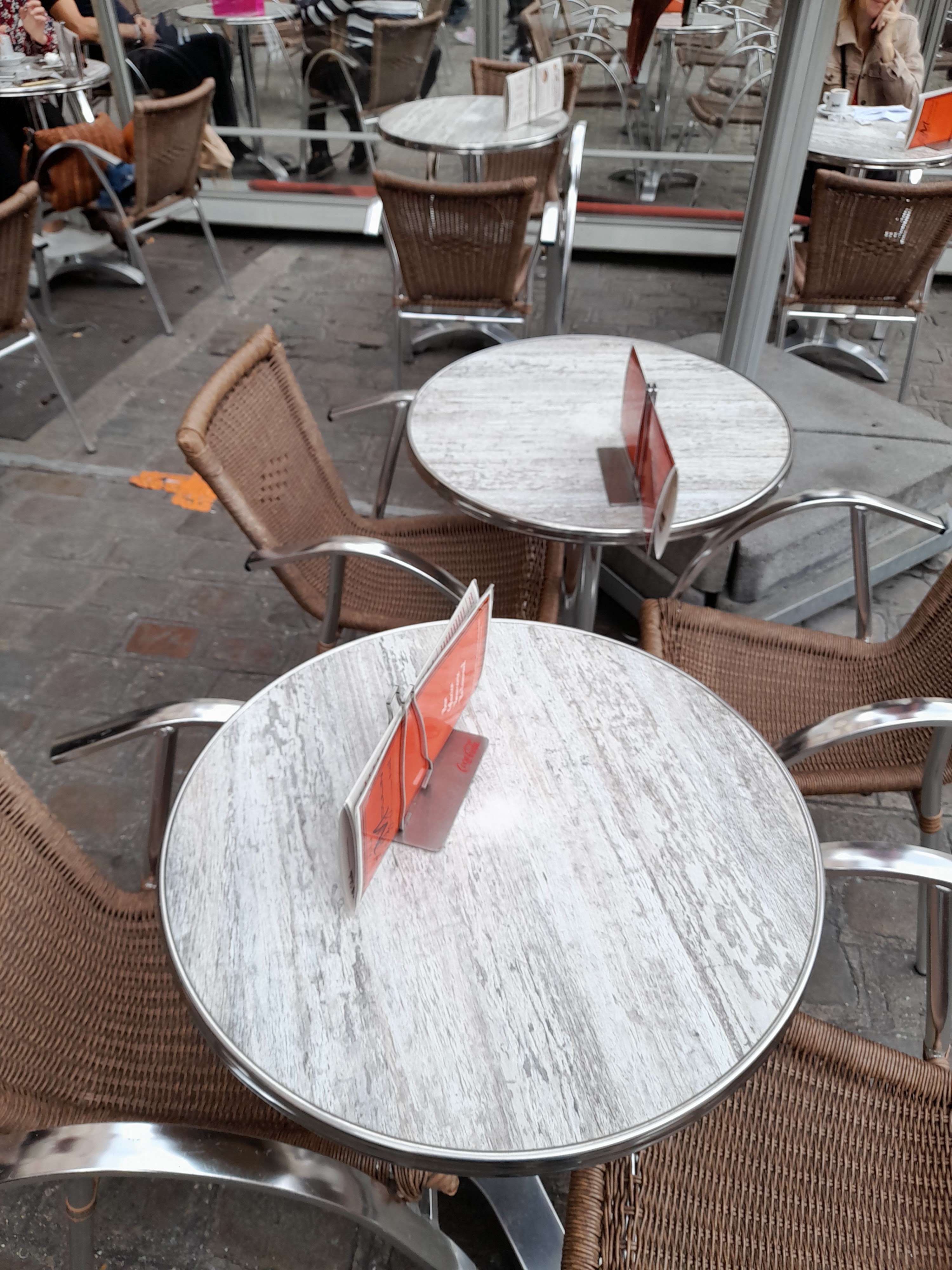 Nous étions 7 et voulions manger et boire, la serveuse n’a pas voulu nous placer à une table de libre… elle a préféré nous laisser devant une petite table pour 2 au soleil, avant de partir et nous laisser sans explications. Ma foi, il y a suffisamment d’autres établissements sur la même place !