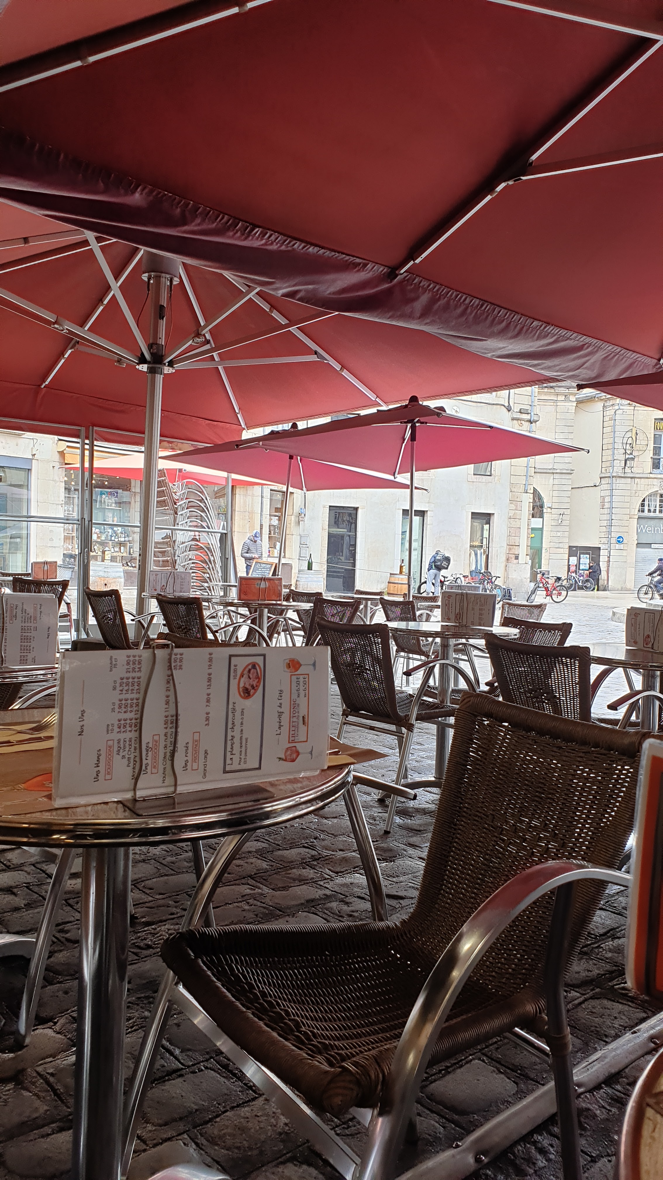 Je suis dijonnaise depuis toujours et me suis rendue qu'exceptionnellement dans cet établissement uniquement lorsque des amis s'y trouvaient en terrasse et pour cause car ce n'est pas la première fois où je suis agacée. Je suis commerçante et fille de commerçants indépendants et n'aie jamais vu un propriétaire (référence à une aventure passée) et des salariés si désagréables ! A la parisienne, à peine bonjour, j'étais avec mon sandwich, ce n'était pas prévue que je m'arrête (des amis s'y trouvaient à boire l'apéro)et le serveur me saute dessus avec un ton plus que désagréable pour me faire remarquer que je n'ai pas le droit de manger en terrasse (chose que je comprends vu que je suis une ancienne restauratrice). Deuxième point hallucinant 3€ pour un simple sirop. Mon ami paye en liquide, le serveur ramasse et ne lui demande même pas s'il veut sa monnaie. Il ne nous adresse pas un regard et ne nous salut pas en partant, il a fallu que je lui dise au revoir de façon appuyée pour qu'il le fasse à son tour. Je suis définitivement vaccinée, cet endroit est un attrape touristes qui ne se soucie absolument pas des locaux et c'est intolérable de se comporter de la sorte avec ses clients !!!