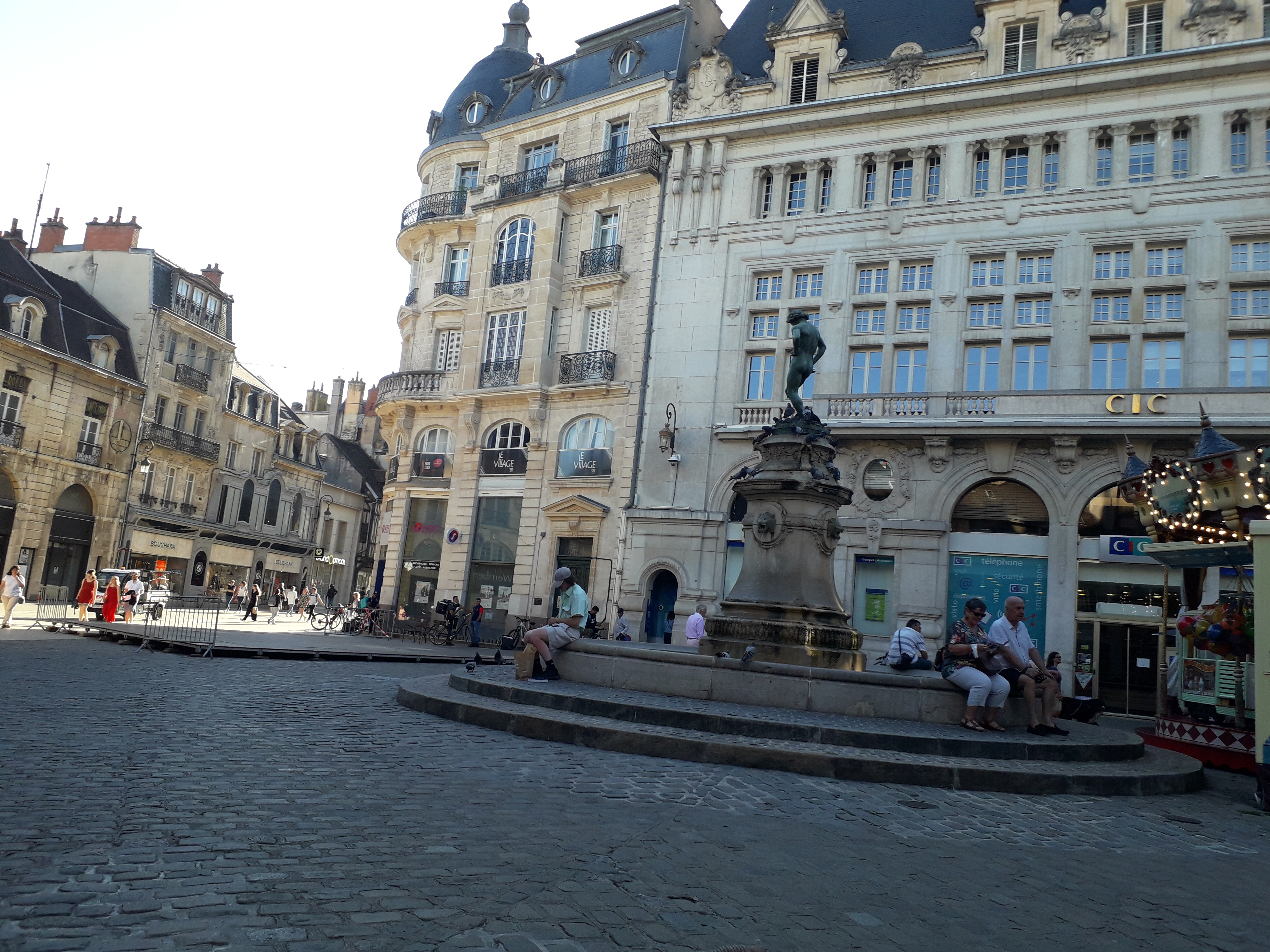 Nous voulions manger dans ce resto pour la pause bib de bébé (2 mois en poussette landeau) Un des serveur voulais nous installer près du carousselle ( coter pratique pour embêter personnes) Une des autres serveuse nous dit que le landeau va gêner que ça ne sera pas du tout pratique...(alors que dans le fond il y avait déjà un couple avec une poussette) Merci à elle de nous avoir refuser puisque pas dit directement bien évidemment!! Comme ça on a pu aller manger bien tranquillement dans une bar restaurant non loin au près des fontaines ou le cadre y est super beau!!ou les burgers y sont délicieux!!( c'est le pop arts) Heureusement que les bourguignons sont chauvins dit donc!!