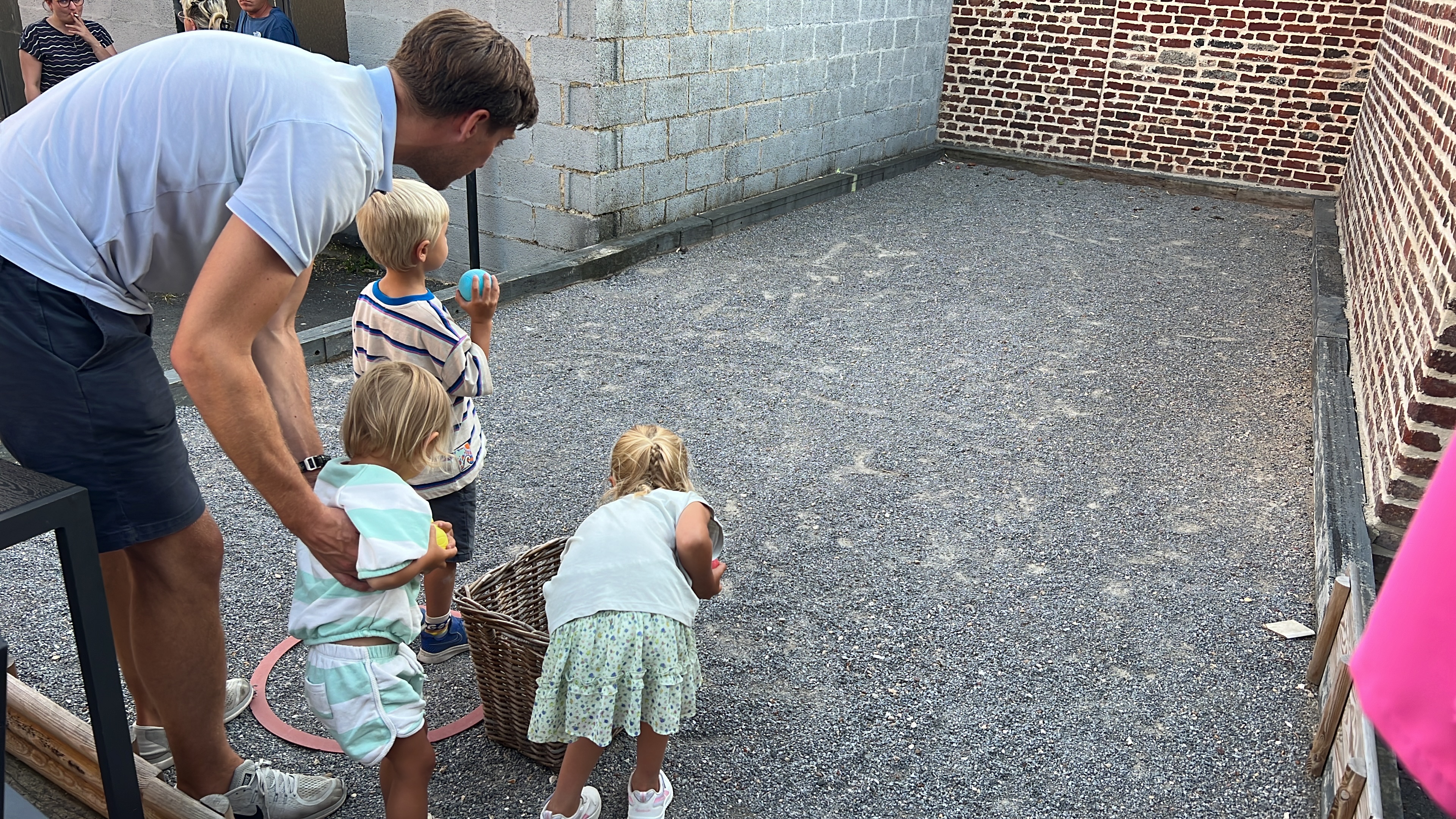 Table de 8 (dont 4 enfants) dans la cour extérieure, équipée d'un terrain de pétanque. Très belle présentation des plats, nous nous sommes régalé. Je le recommande 👍