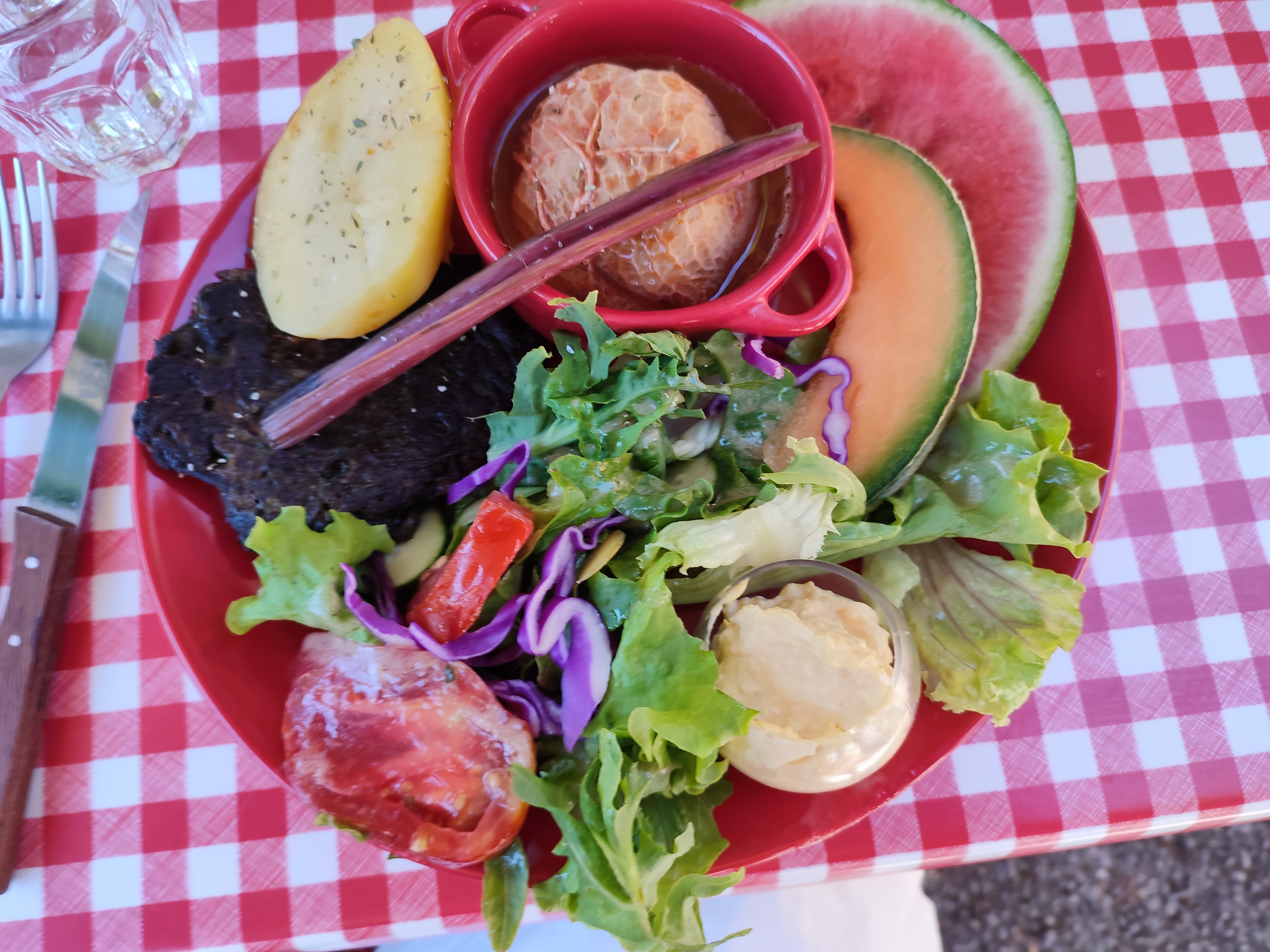 Jolie découverte au hasard d'une promenade, belle terrasse et plats bons et copieux ( pastadous je crois me rappeler, genre de pancake salé recouvert de roquefort, ou autre, et un oeuf au plat) . Personnel sympathique. Citronnade maison, malheureusement pas fraîche malgré les quelques glaçons quin'ont pas réussi à la rafraîchir. (d'où la perte de la 5ème étoile).