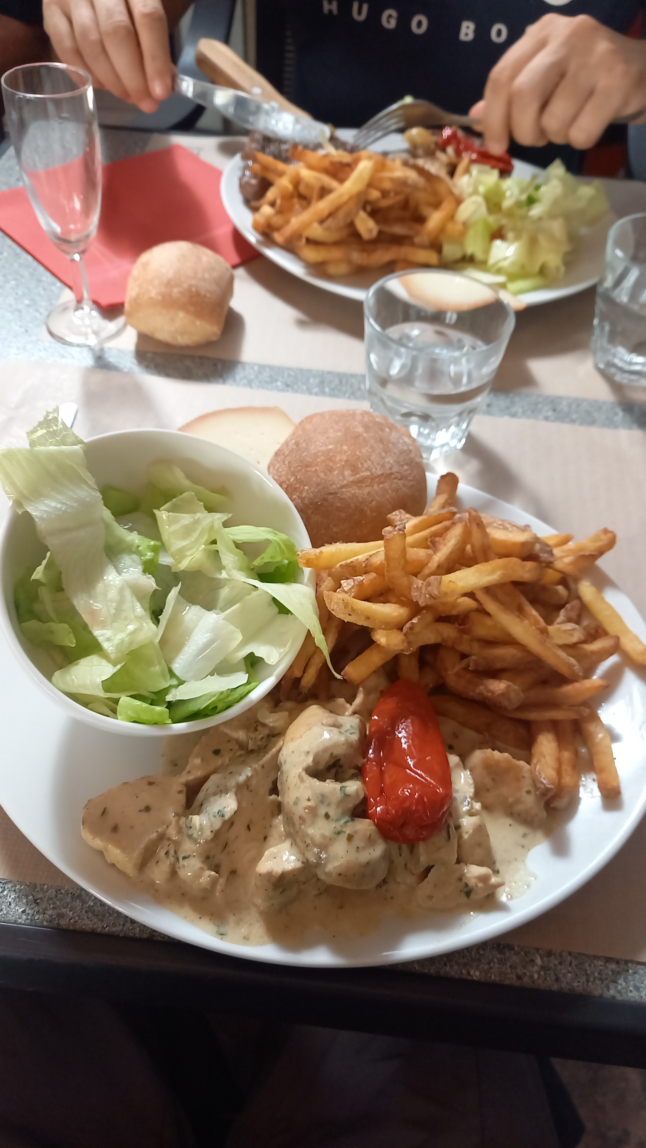Très très agréable Patron et serveur très sympas Repas très simple mais très très bon Viande très fondante frites maison Cadre sympa