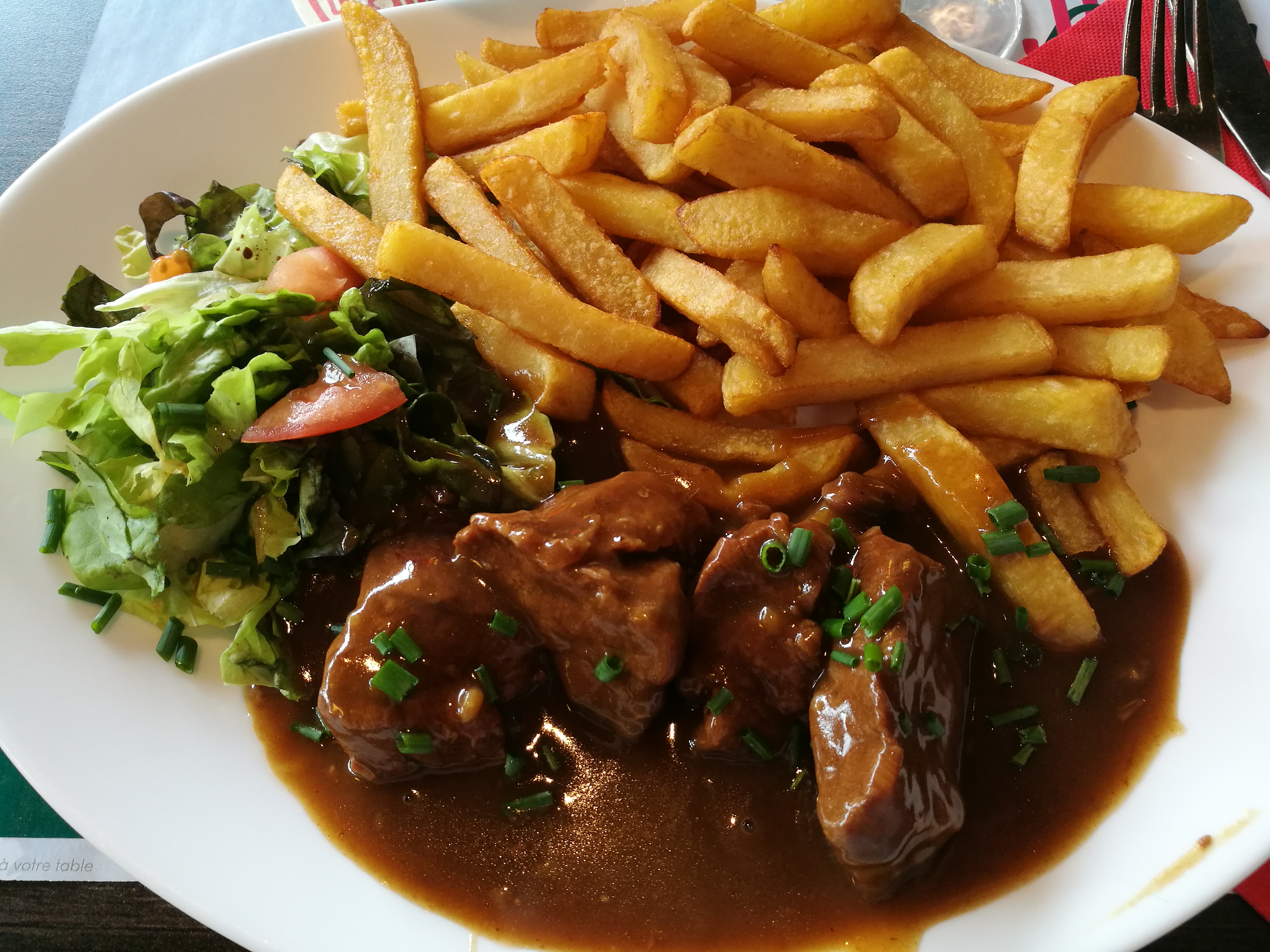 Grosse déception sur les Frites et surtout le café gourmand tout simplement immangeable franchement déçu ! Néanmoins la carbonnade est très bonne.