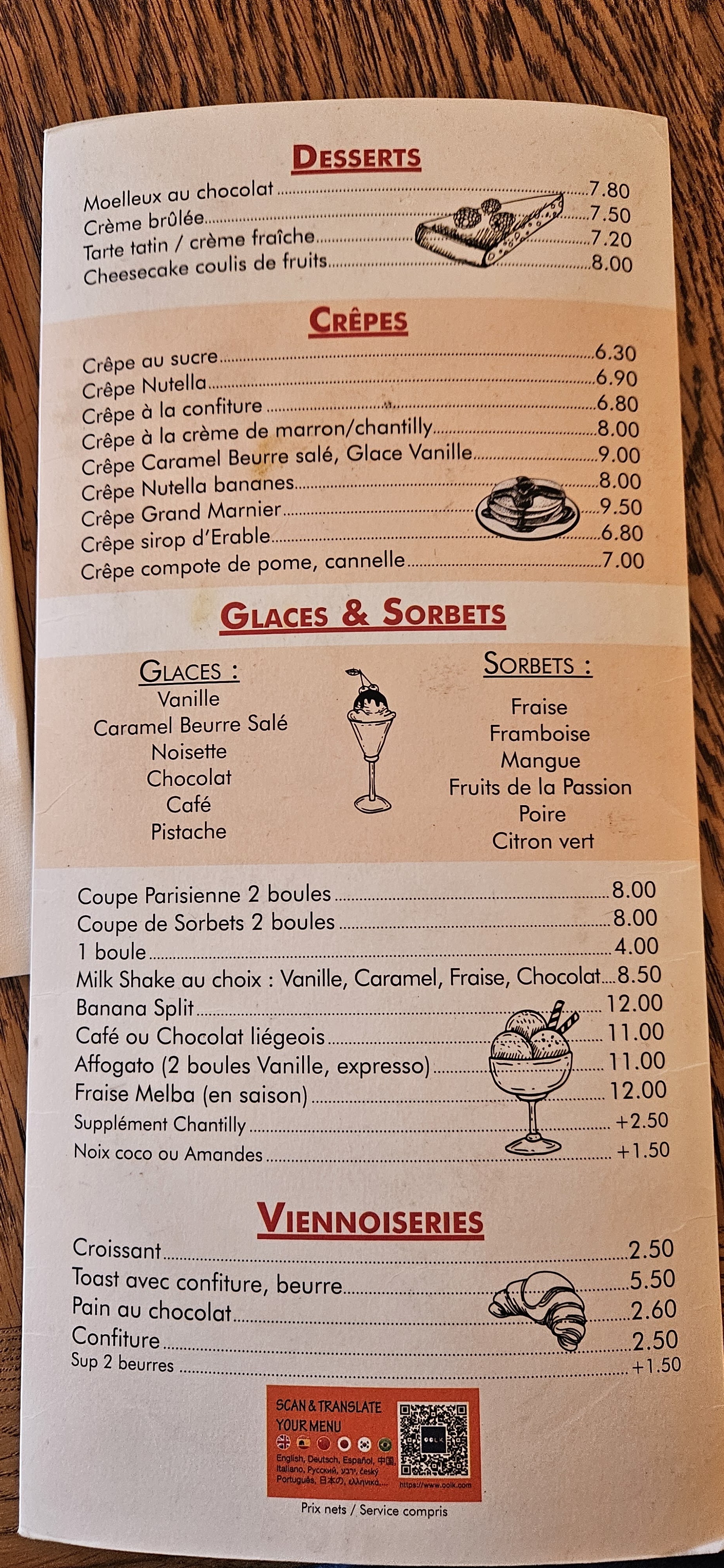 Lieu caractéristique immédiatement au pied de l'église Notre Dame. Prix en ligne pour le lieu. Bonnes crêpes et café ! Personnel courtois.