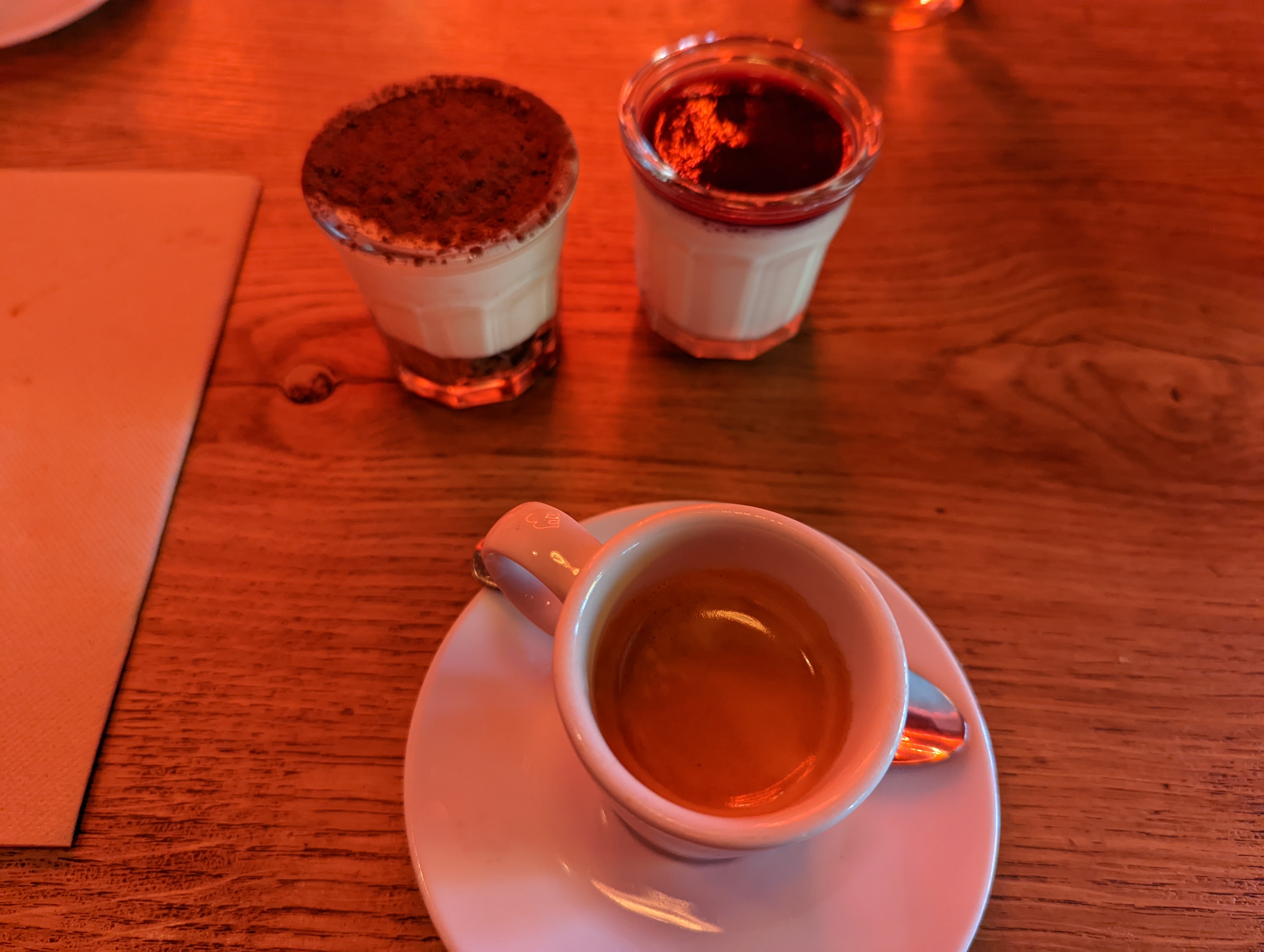 Bon accueil, décor très sympa et bon service. Le point faible malheureusement c’est ce que nous avons mangé, nos pizzas étaient bonnes mais pas incroyable, la pâte était très plate et les champignons sur la regina donnaient l’impression de sortir de la conserve. Le tiramisu était très liquide et il y avait très peu de biscuits. J’aurais vraiment aimé donner un meilleur avis mais ce n’est malheureusement pas possible