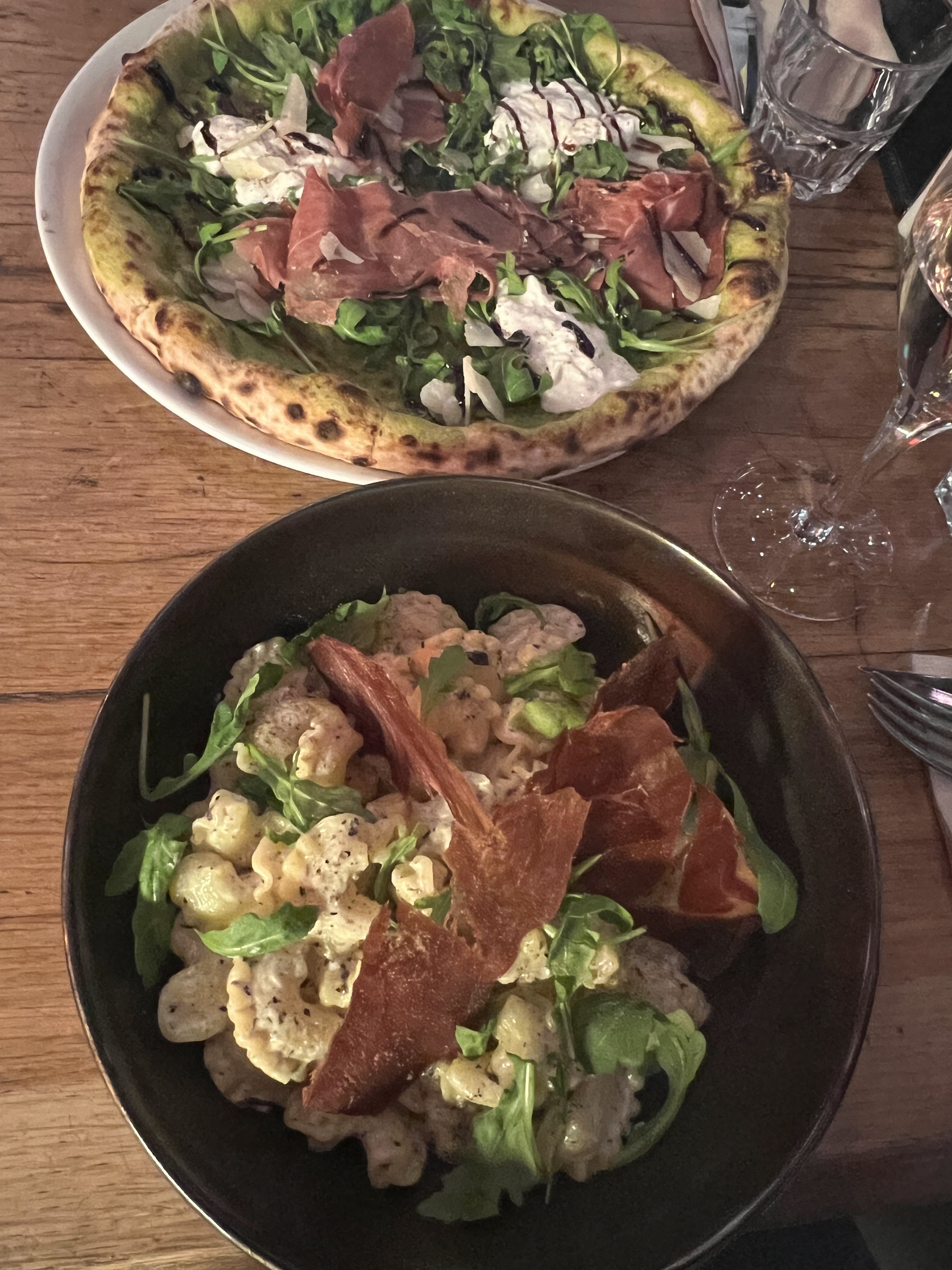 J'ai pour habitude de me faire mes propres avis même si j'aime bien regarder les avis des autres .. Je suis sous le charme des lieux L'intérieur et juste génial j'adore le concept L'accueil et les serveurs/ses nickel et professionnels Nous avons pris 2pizzas Une parma base blanche un régale une des meilleurs pizza que j'ai mangée Et une calzonne un régale aussi La glace on la partagés 1pour2 Bref je me suis régalée