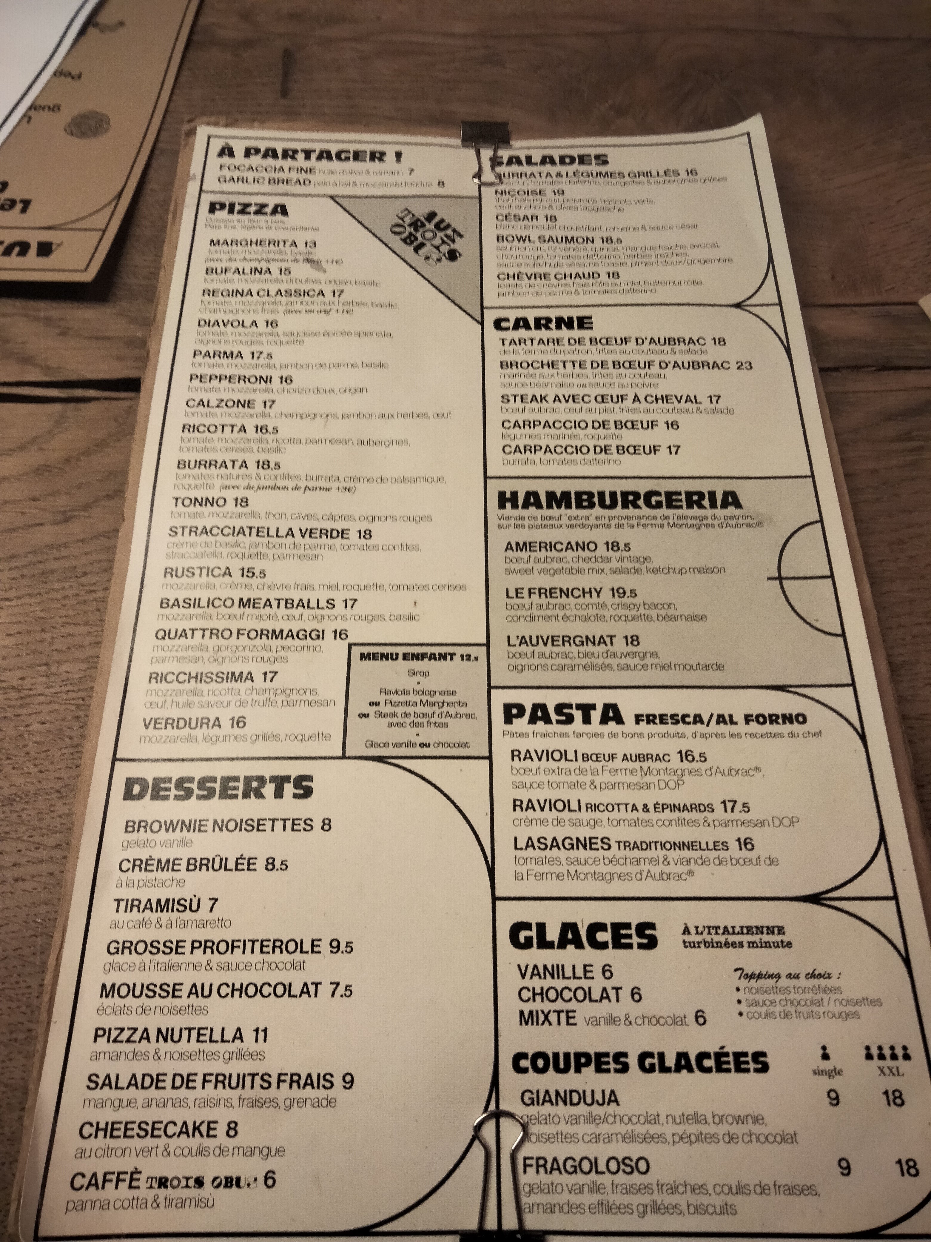 Actualisation de l’avis posté en mai: Je suis retourné fin juillet sur invitation par la maison avec un ami et la qualité de la pâte s’est nettement améliorée, j’ai retrouvé le niveau de pizza auquel les trois obus m’avaient habitué par le passé. Merci au personnel pour l’accueil et pour les excellentes pizzas! Avis original posté en mai: J’étais un habitué plutôt satisfait par le passé. Mais la qualité des pizzas s’est inexorablement dégradée. Sachant que les pizzas constituent 50% de la carte, c’est grave. Je suis venu avec ma copine il y’a trois semaines. On nous a servi des pizzas dont la pâte était certes croustillante sur les côtés mais d’une finesse extrême au centre: on a l’impression de ne manger que de la sauce tomate et de la mozzarella tellement la pâte est presque inexistante. N’essayez même pas de soulever une part dans la main pour la porter à la bouche, vous n’y arriverez pas et tout va tomber. Nous l’avons fait remarquer au serveur qui nous a sorti un bla-bla sur la difficulté de trouver des pizzaiolos, ils restent pas longtemps etc… Malgré tout je suis revenu hier soir pour prendre des pizzas à emporter: la pâte était encore plus fine que la dernière fois, a croire qu’il s’amusent à l’etirer au maximum pour faire des économies sur la matière première. Et je passe sur le prix de la pizza: 15€ pour une pizza tomate mozzarella. Bref si vous cherchez des bonnes pizzas, passez votre chemin et trouvez un bon italien qui ne cherchera pas à faire des économies sur la farine.