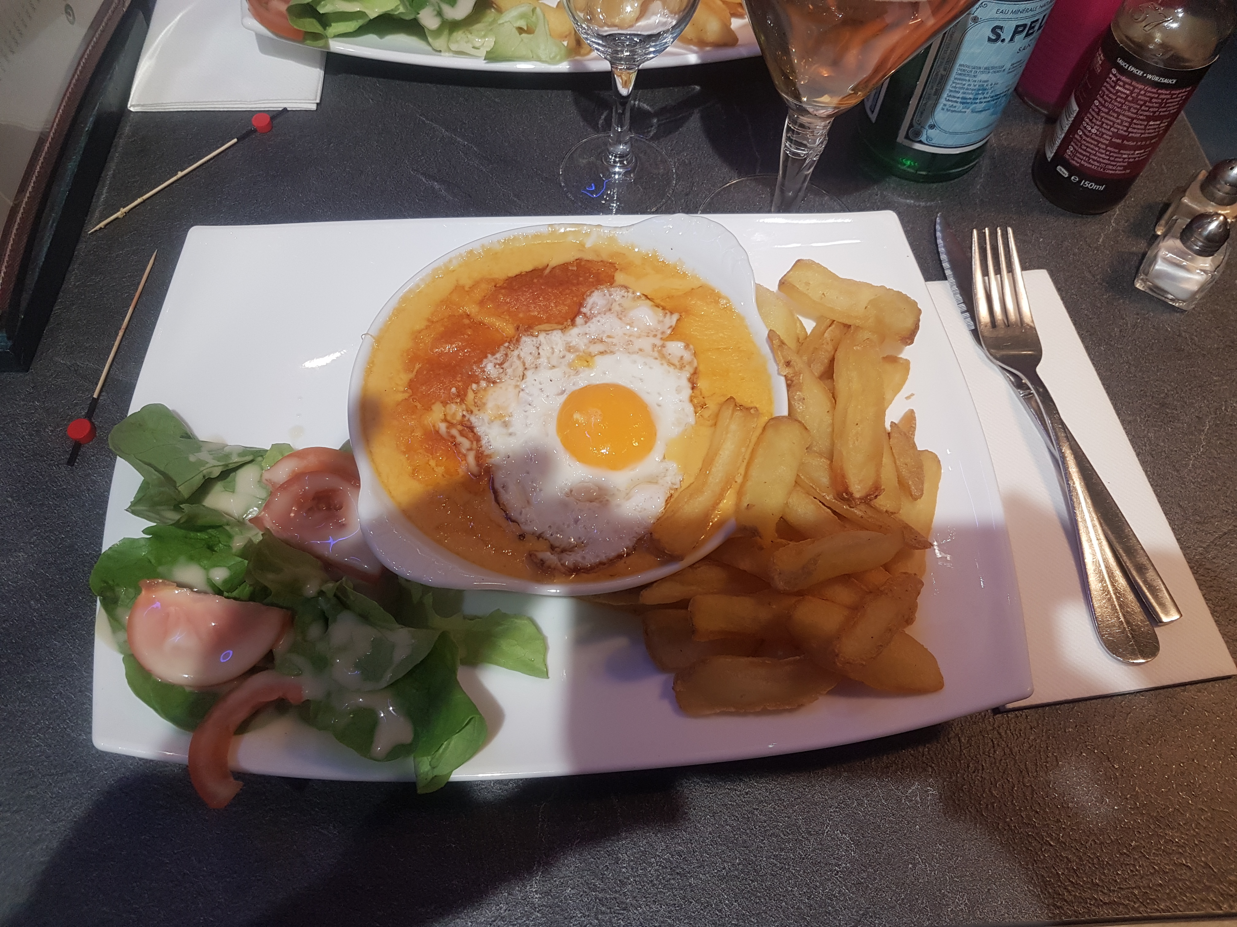 Frite congelé plongée un moment dans une huile qui déjà bien servis . sauceo béarnaise métro pas maison . Et le welch zéro mais vraiment nulle v et le patron au bar