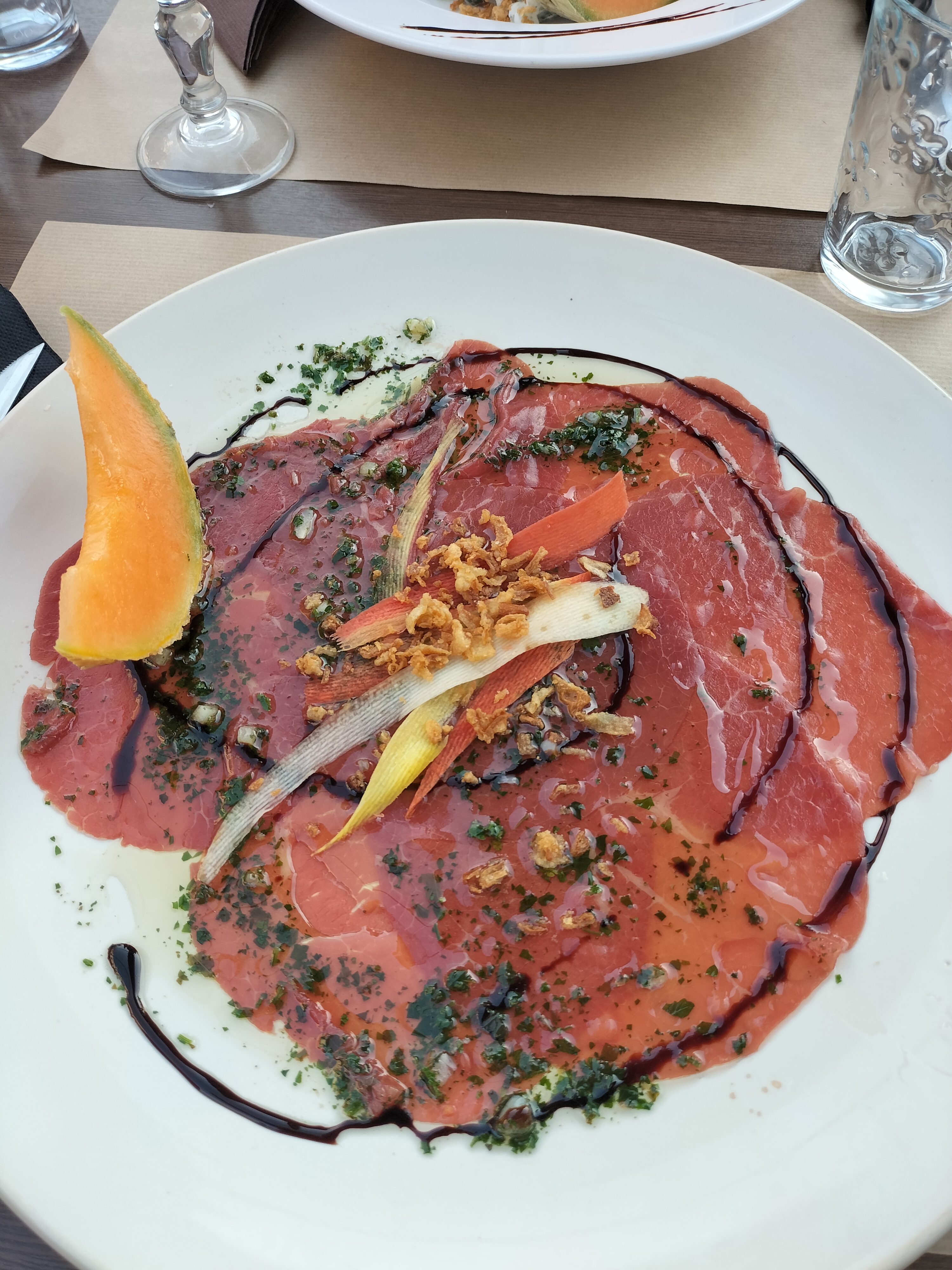 Terrasse ombragée et calme. Menu complet à 14,50€ copieux et savoureux. La viande était très tendre, le serveur très sympathique et arrangeant. Je recommande.