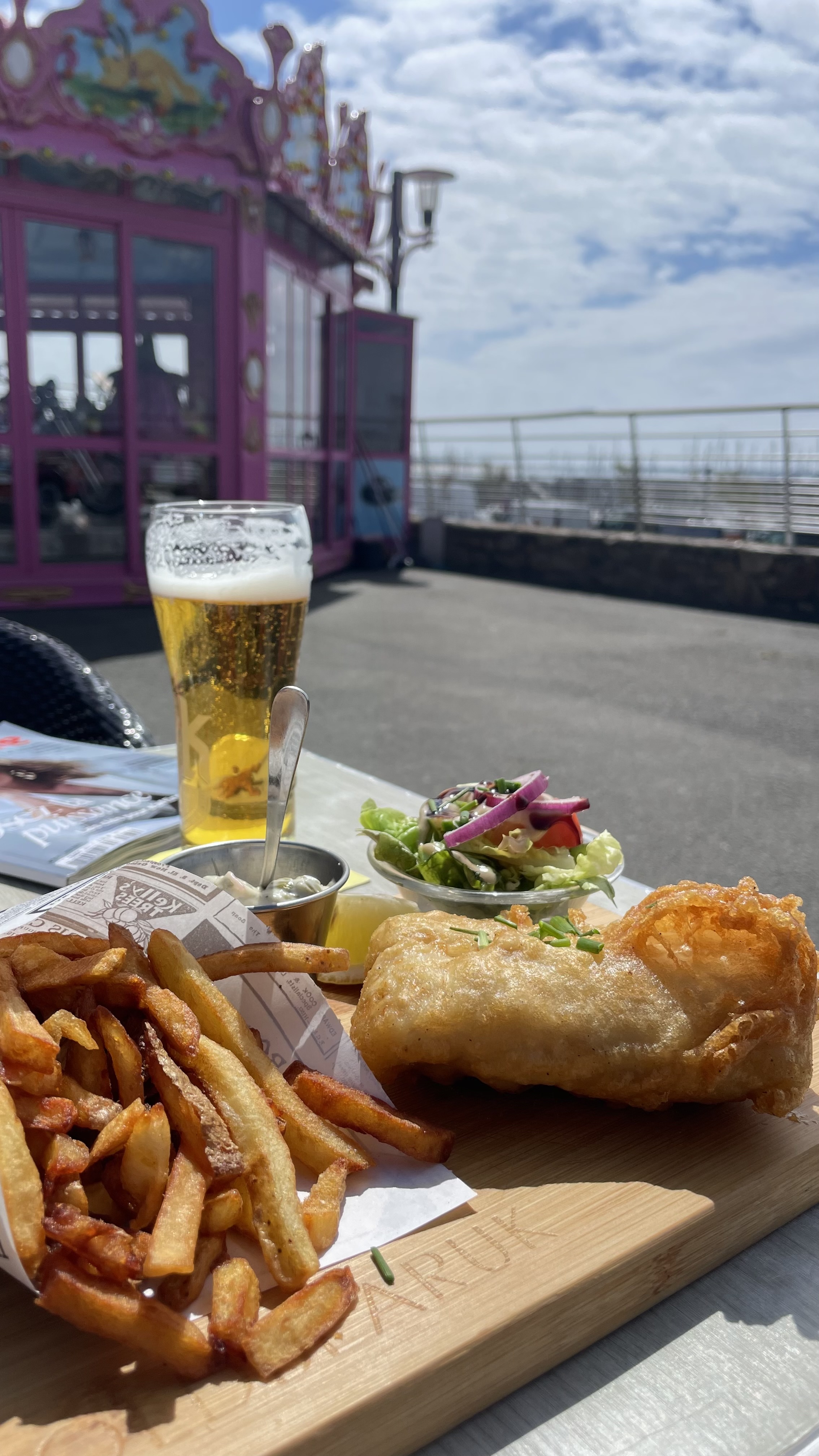 Un délicieux fish and chips avec vue sur le port. Service chaleureux et super rapport qualité prix ! Je recommande !!