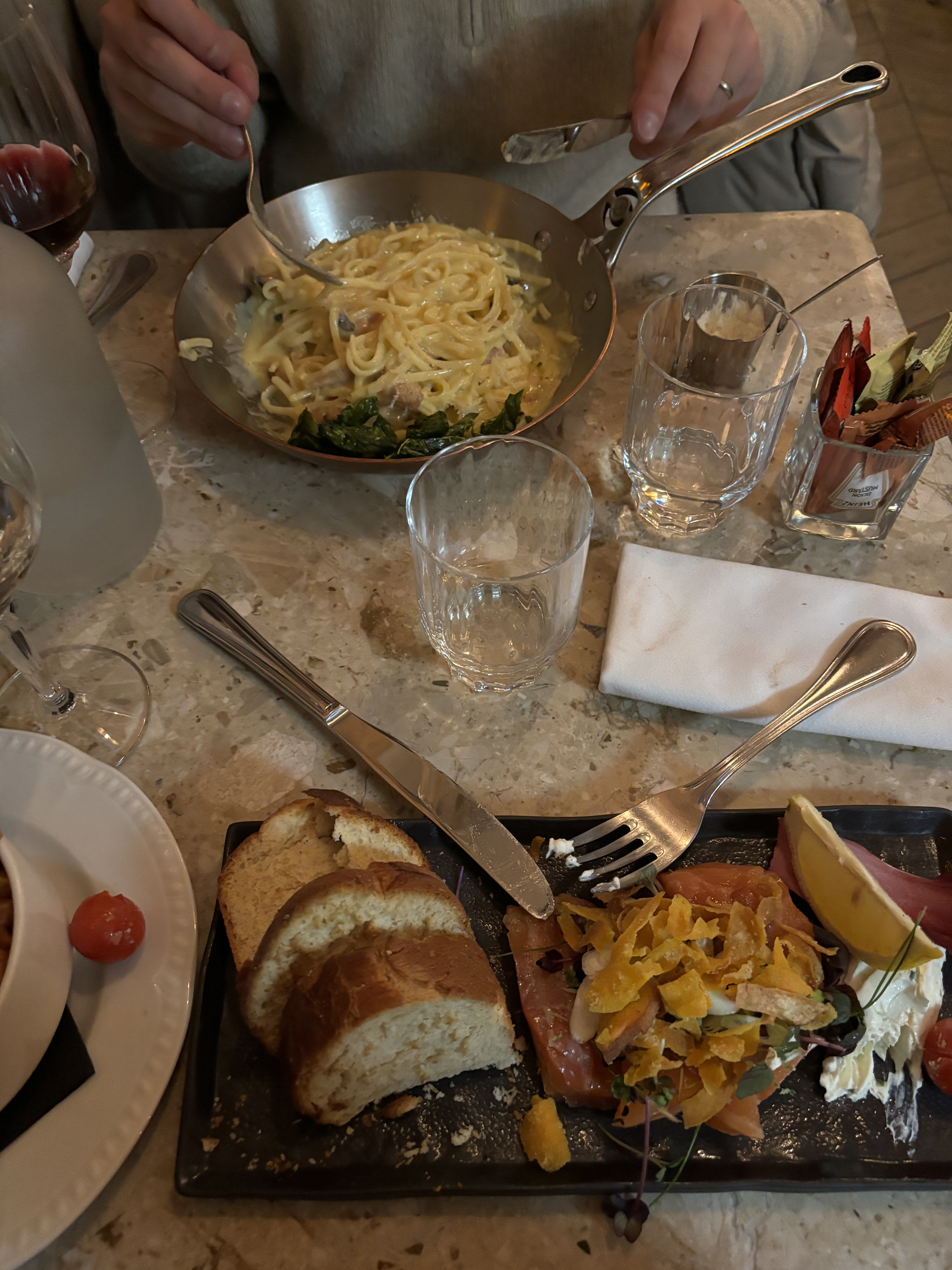 Ambiance chaleureuse, serveur très agréable, plats de qualités. Fish and schips, wok nouilles poulet (un peu piquant). Pour le dessert Brioche perdue au nutella excellente mais très copieuse heureusement nous l’avons partagée.