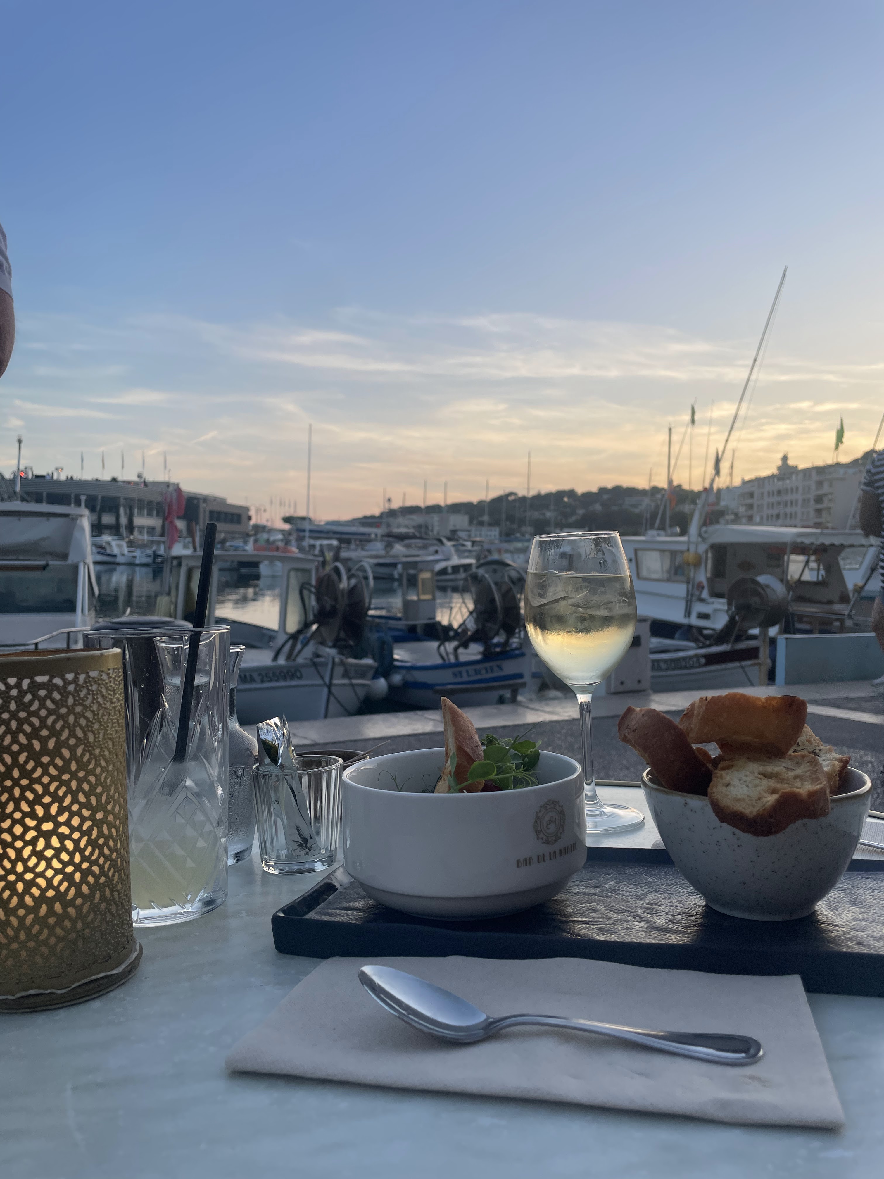 Dejeuner en semaine sur le port en plein soleil. Très agréable moment.