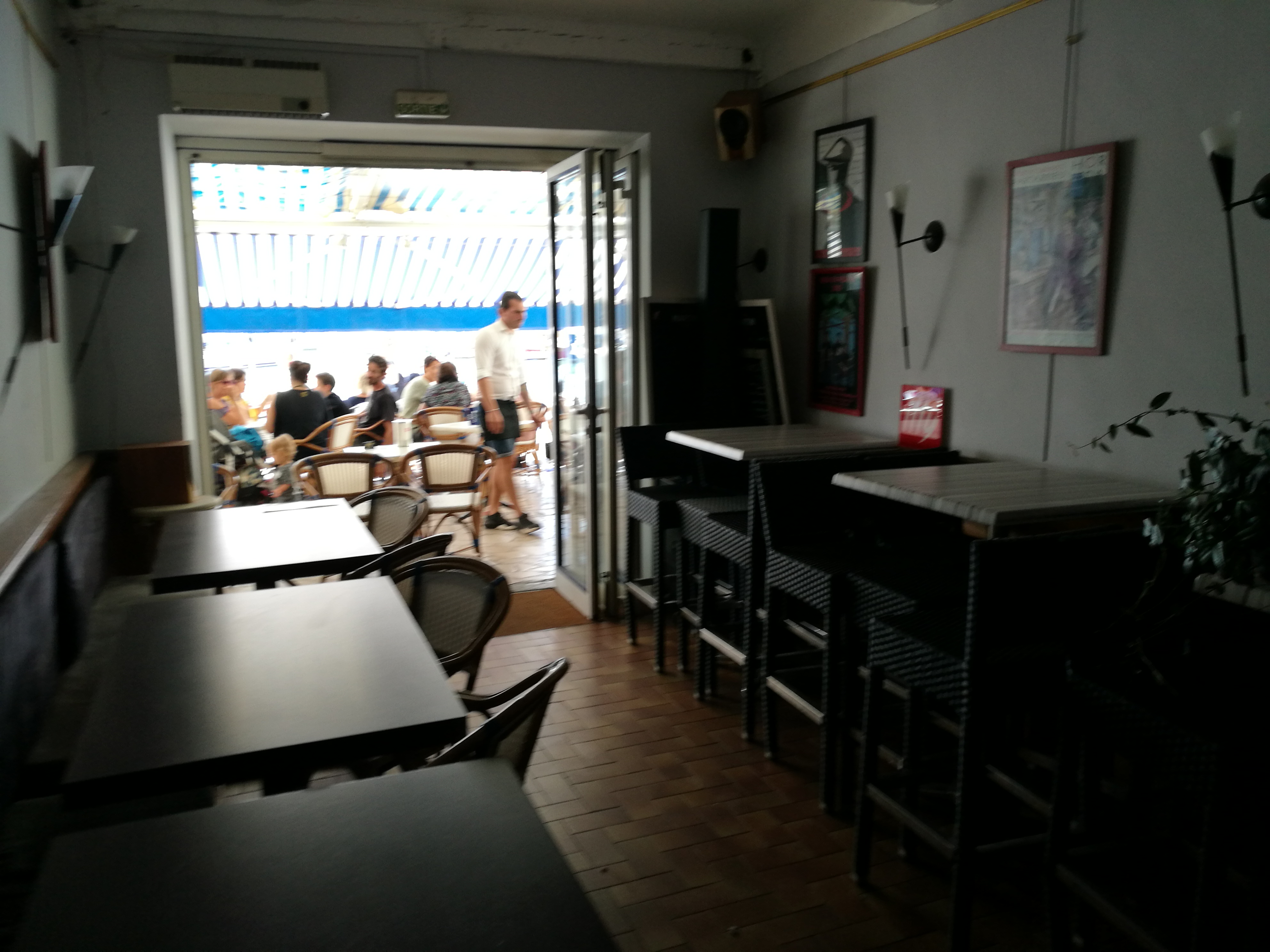 Passez votre chemin !!! Aucun respect du client : nous n'avons pas eu le droit à 5 fauteuils , c'est 2 maxi par table donc 1 de nous sur un pouf ! Le Monaco commandé est arrivé rose pâle et quasi sans bière, ma bière bouteille servie dans un verre quelconque , Forcing pour nous vendre des tapas et une addition hors de prix . Tout ce que l'on déteste et un cliché parfait de l'accueil des commerçants du Sud . Ne vous y arrêtez pas , d'autres bars beaucoup plus accueillant vous attendent plus loin .