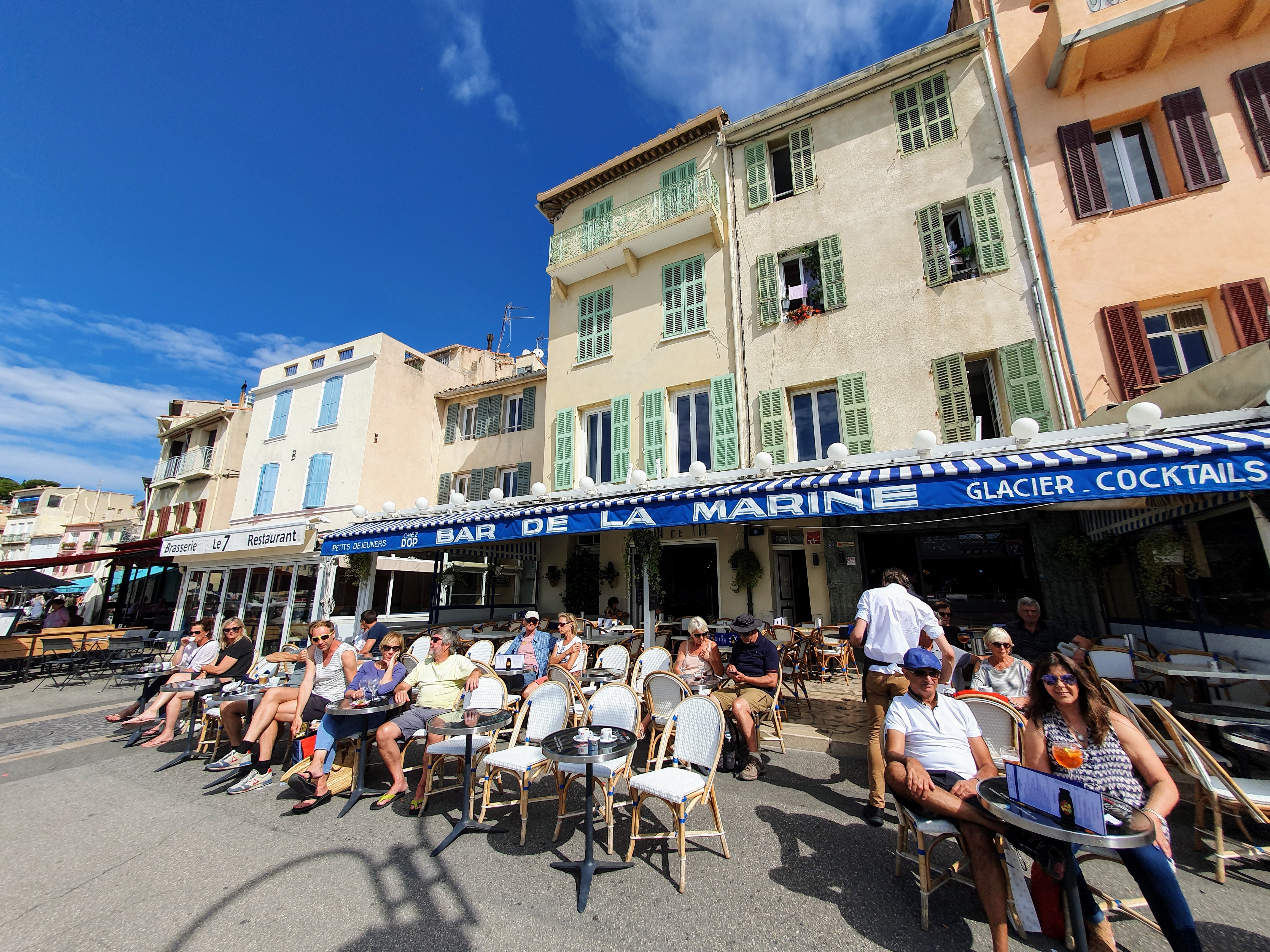 Petit bar idelament placé sur le port de Cassis, endroit parfois une boisson fraîche en terrasse