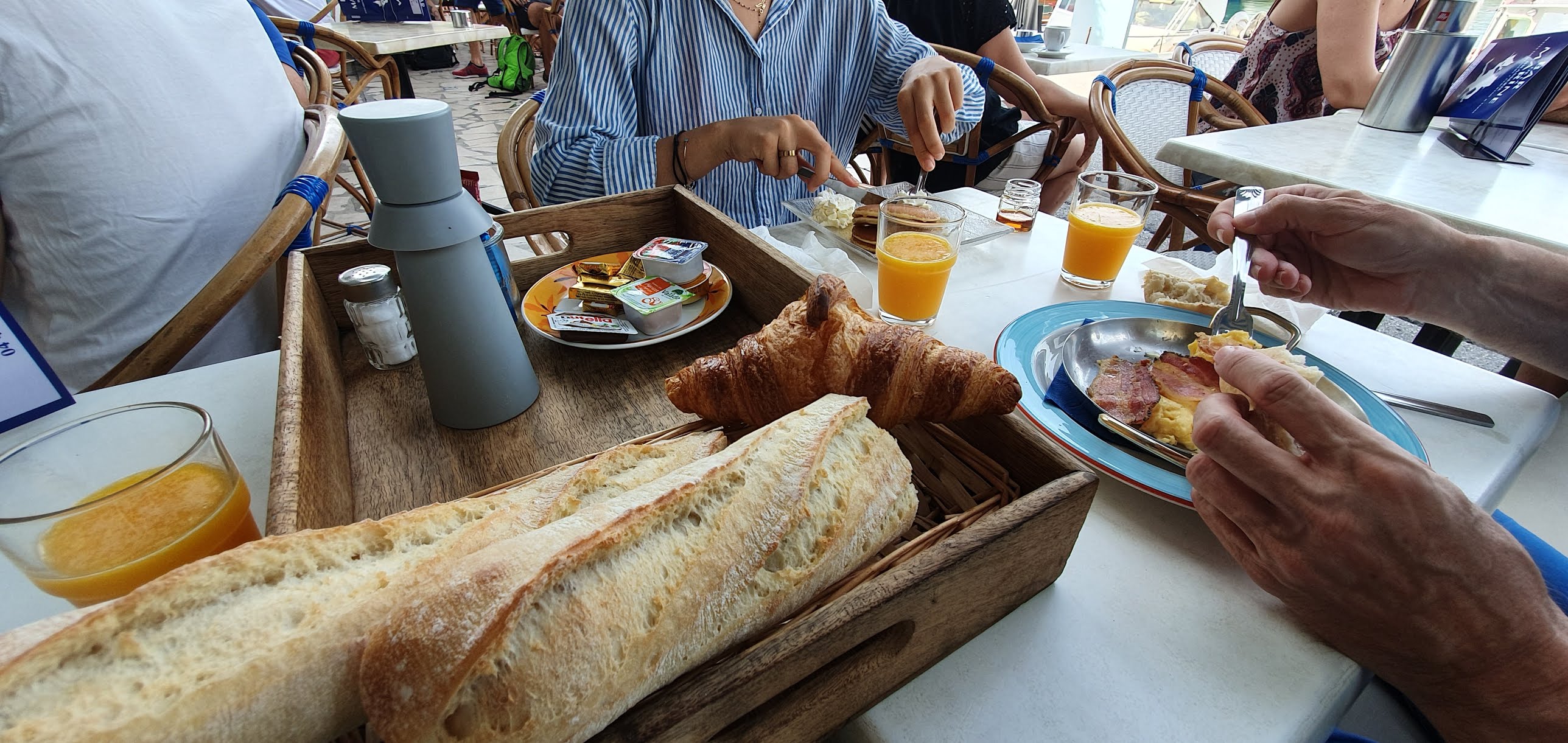 Petit déjeuner le français plutôt complet mais le jus d'orange pressé ( goût d'eau ) n'était pas à la hauteur du tarif. La vue sur le port pour commencer la journée est parfaite.