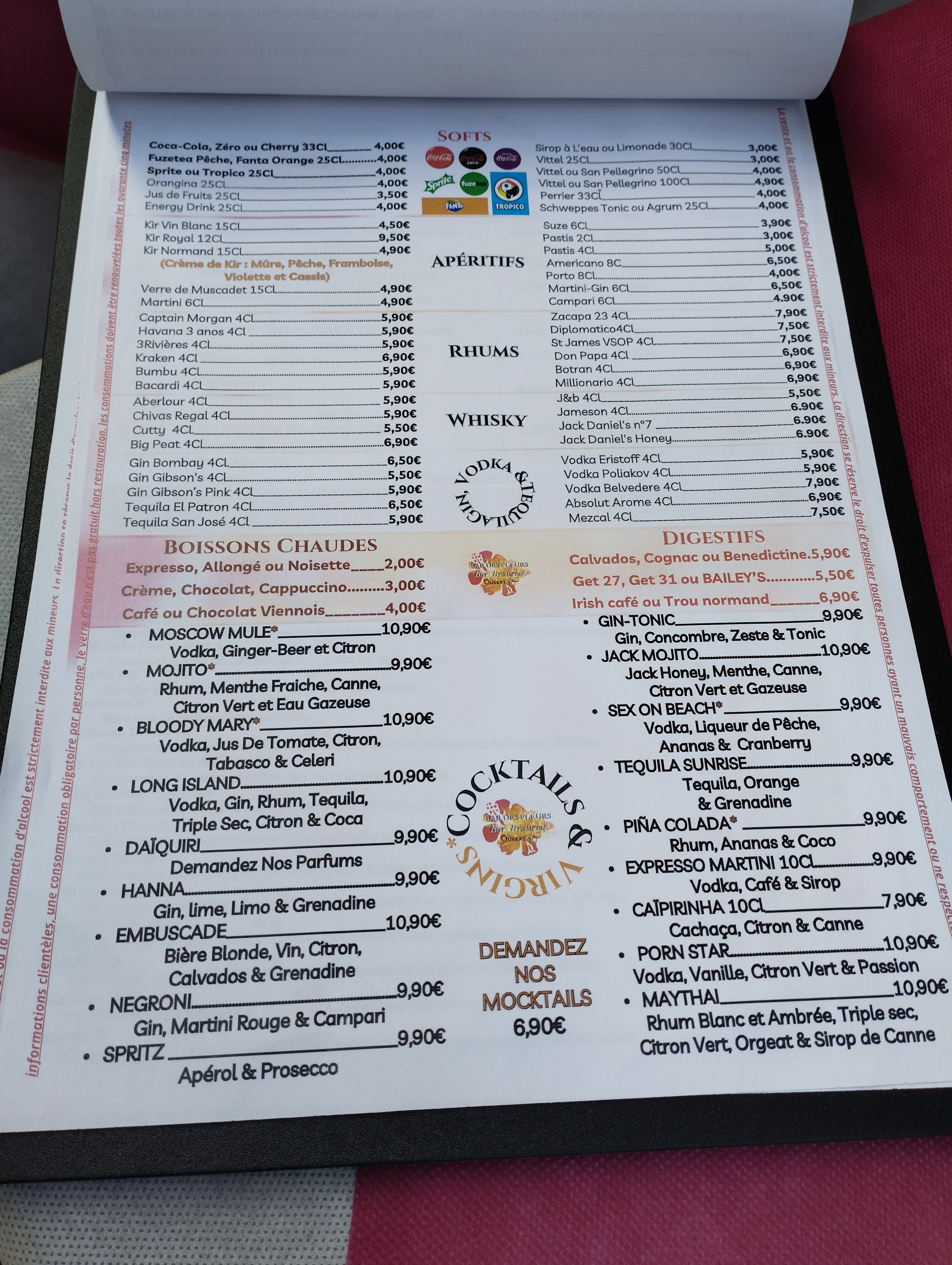 Bonjour très bon repas en quantité suffisante raport qualité prix très bien . Service corecte serveuse et serveur et barman impeccable manque jus un Petit sourire de la serveuse .