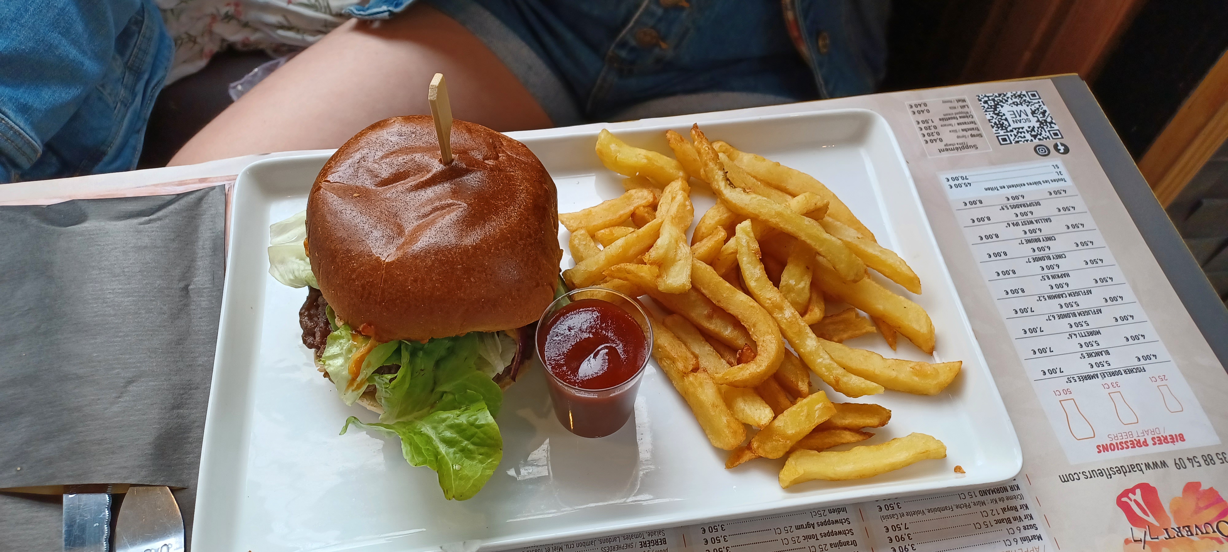 Superbe découverte au hasard d'une rue. Repas en terrasse couverte extra. Hamburger montagnard à recommander et moelleux au chocolat divin 👍