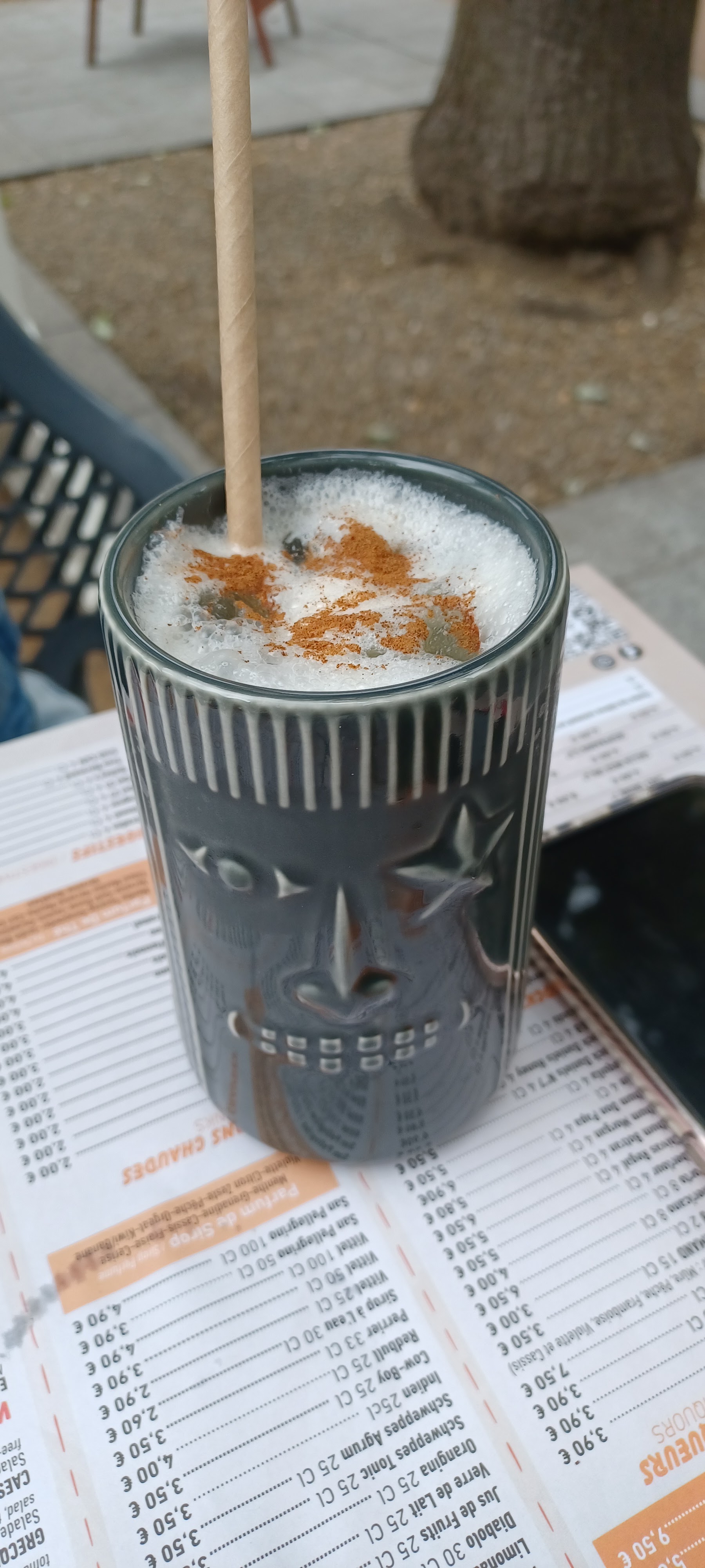 20 minutes juste qu'on prenne nos commandes, ça commence déjà bien. Une amie commande un verre d'eau car elle est enceinte, on a dû pousser une gueulante dans le bar pour l'avoir. Et pourtant il y a du passage autour de nous hein. 3,00e pour un diabolo ( d'ailleur depuis quand c'est avec de l'eau plate ? ) on aurait voulu de l'eau avec un sirop on serait aller a monoprix non ? Au moins on aurait eu le droit au minimum de politesse style bonjour :D Le café est cher pour ce qu'il est ( d'ailleur ne connaisse pas les americano ), j'avais l'impression de boire le même que sur les chantiers ( et encore je crois que celui du chantier est meilleur.. )