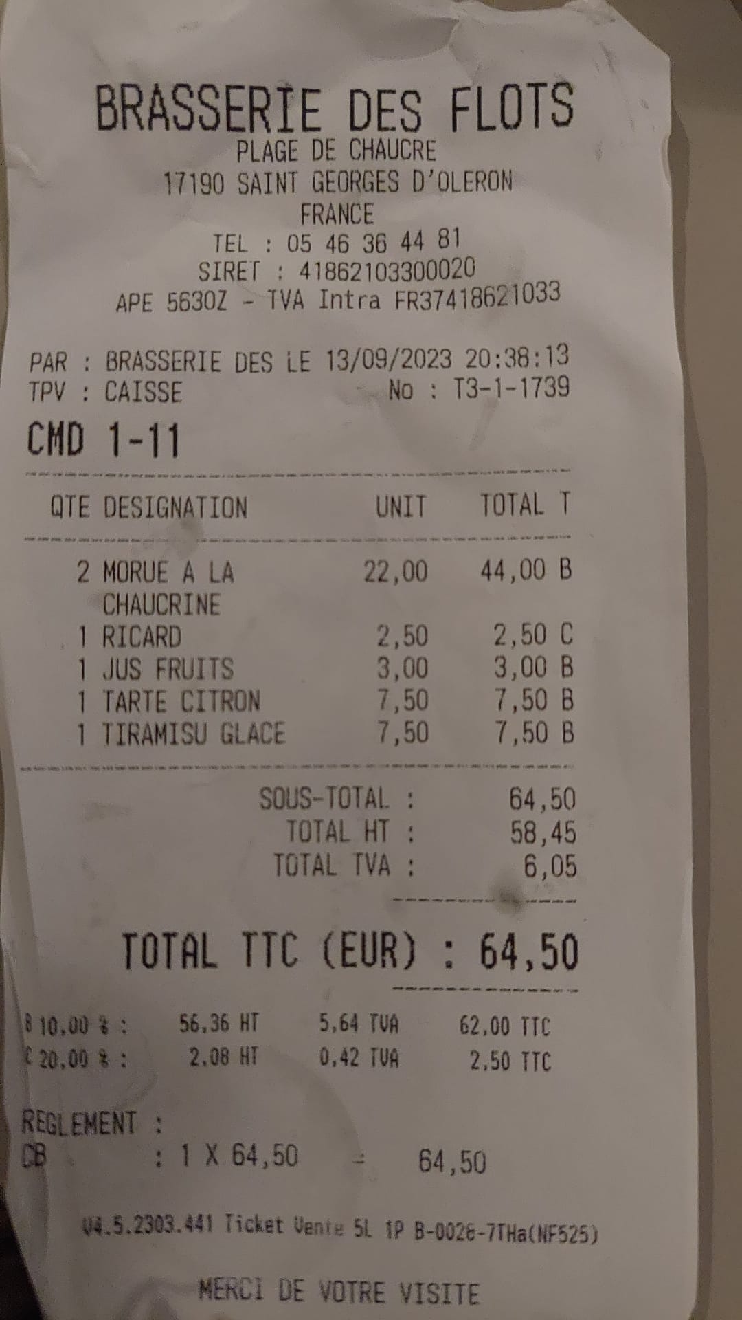 Bon restaurant avec une carte qui laisse peu de choix mais tout est bon et cuisiné à la demande. Service sympathique et efficace carte des vins limités mais on vient pour manger du poisson ! Je le recommande bon rapport qualité prix