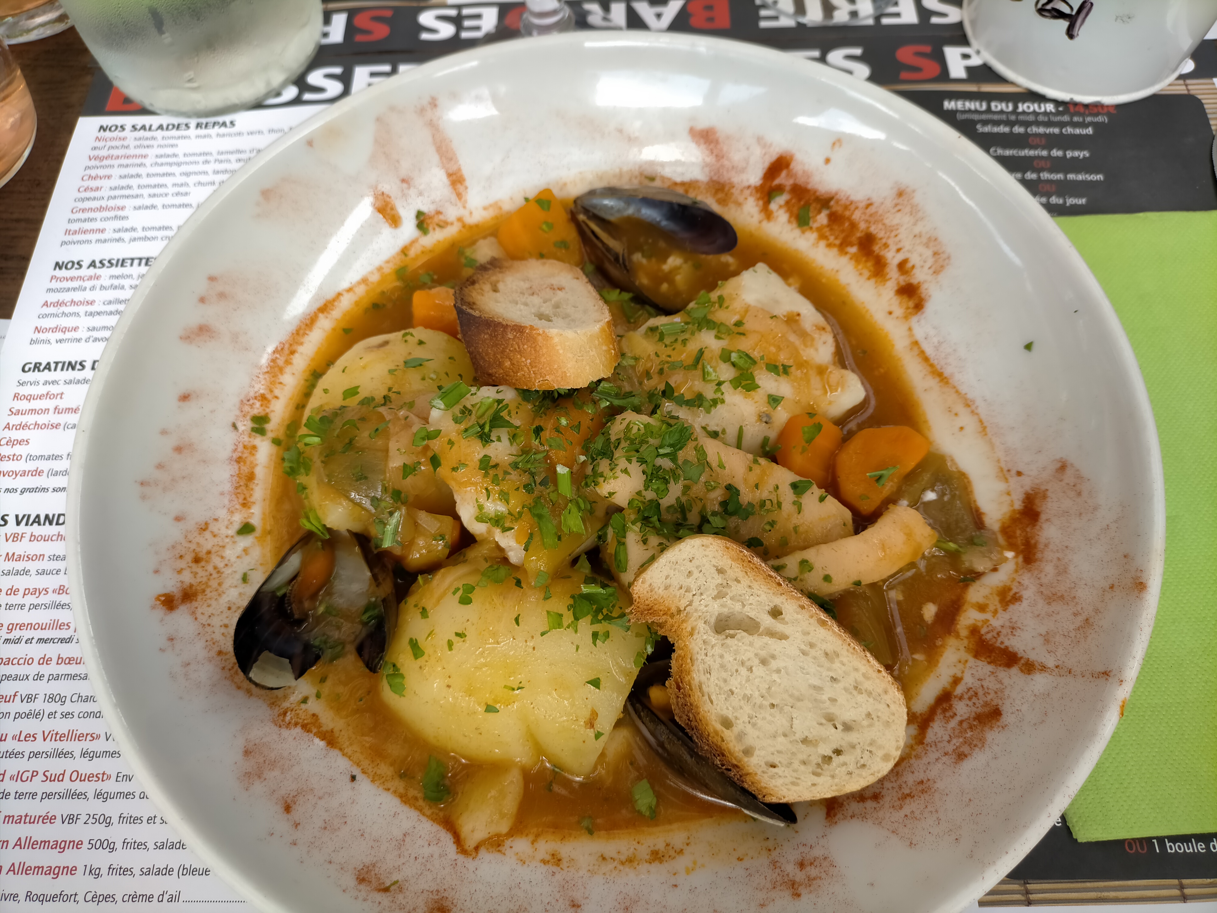 Cuisine généreuse note vraiment très abordable.Venus avant hier retournés goûter la bourride aujourd'hui . Toujours aussi satisfaite