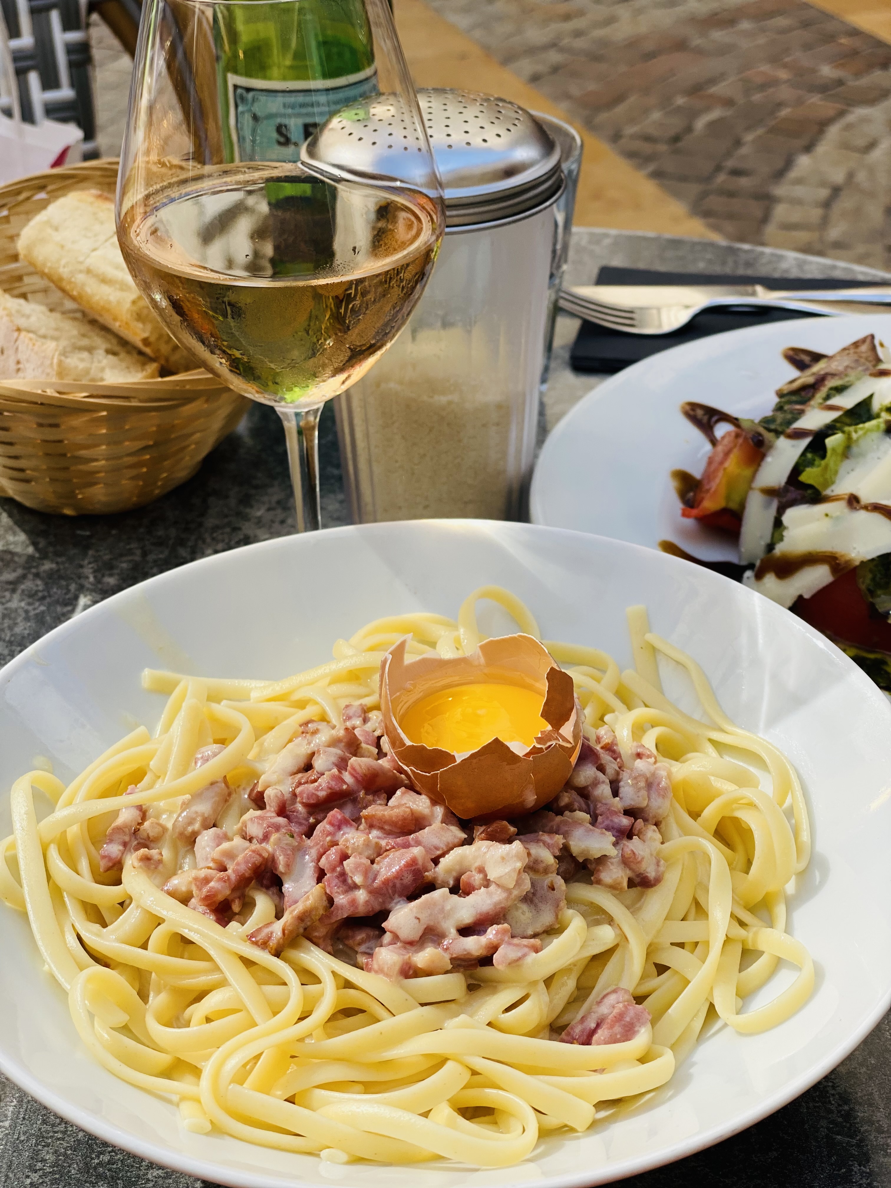 Nous sommes tombés sur cet endroit et sommes restés pour un apéritif. Nous avons vu des invités à la table à côté de nous avoir le « plat du jour » qui avait l'air super donc nous en avons eu un aussi. C'était absolument bon et terre-à-terre (tarte aux asperges et parmigiano) pour moins de 10 €. Le personnel sympathique également. Bel endroit