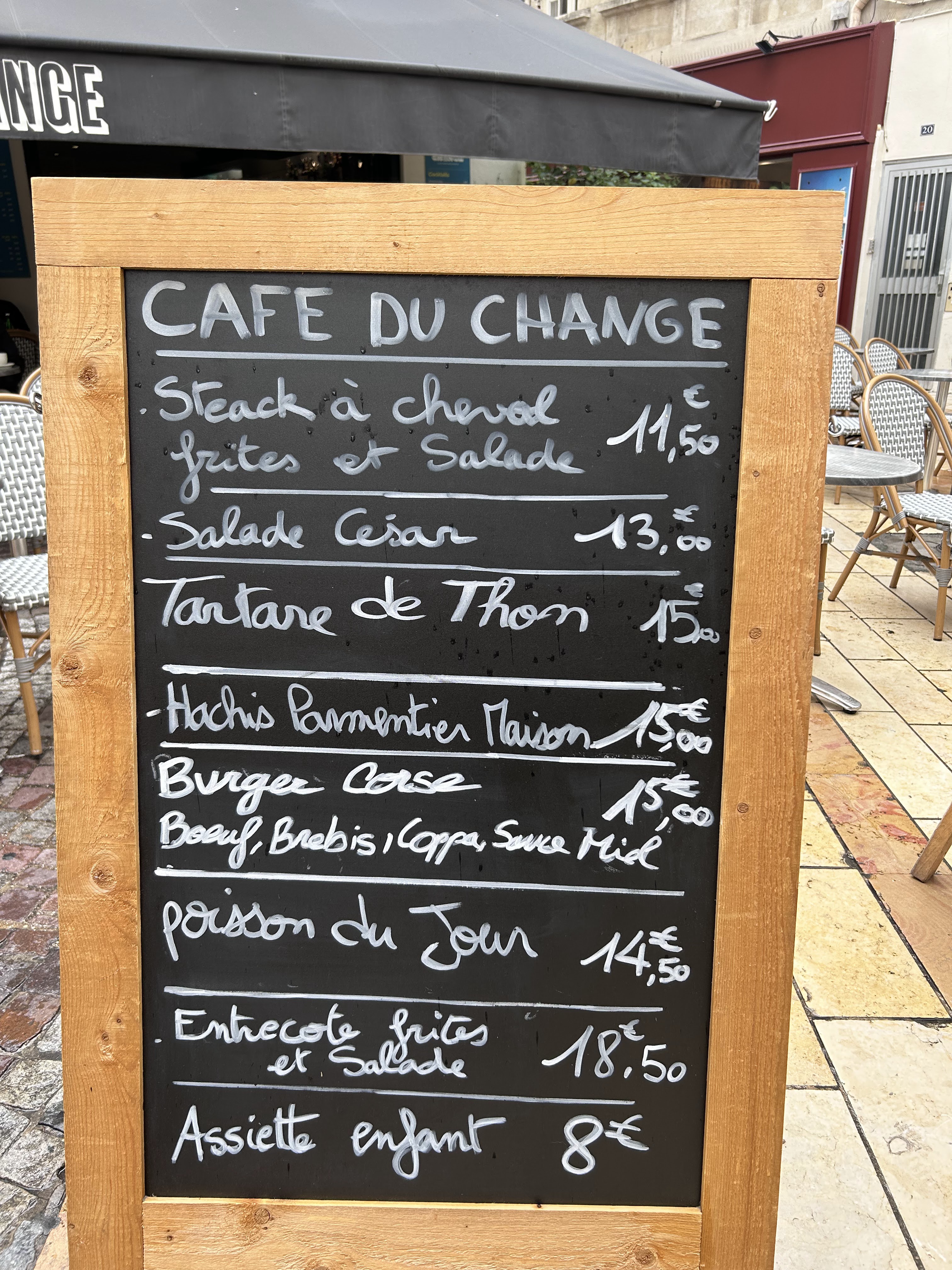 Lorsque vous partez en vacances, il y a toujours un café ou un restaurant où vous faites semblant d'être un client à vie. Le Bar du change fut notre café d'adoption lors de notre séjour à Avignon. Le personnel est agréable, détendu et professionnel ; L'endroit est idéal pour observer les gens et à proximité des commerces et des attractions touristiques, et la nourriture est bonne et bon marché. C'est l'un des cafés dont on se souvient avec tendresse des années plus tard, et dont la simple mention donne l'impression d'être à nouveau en vacances.