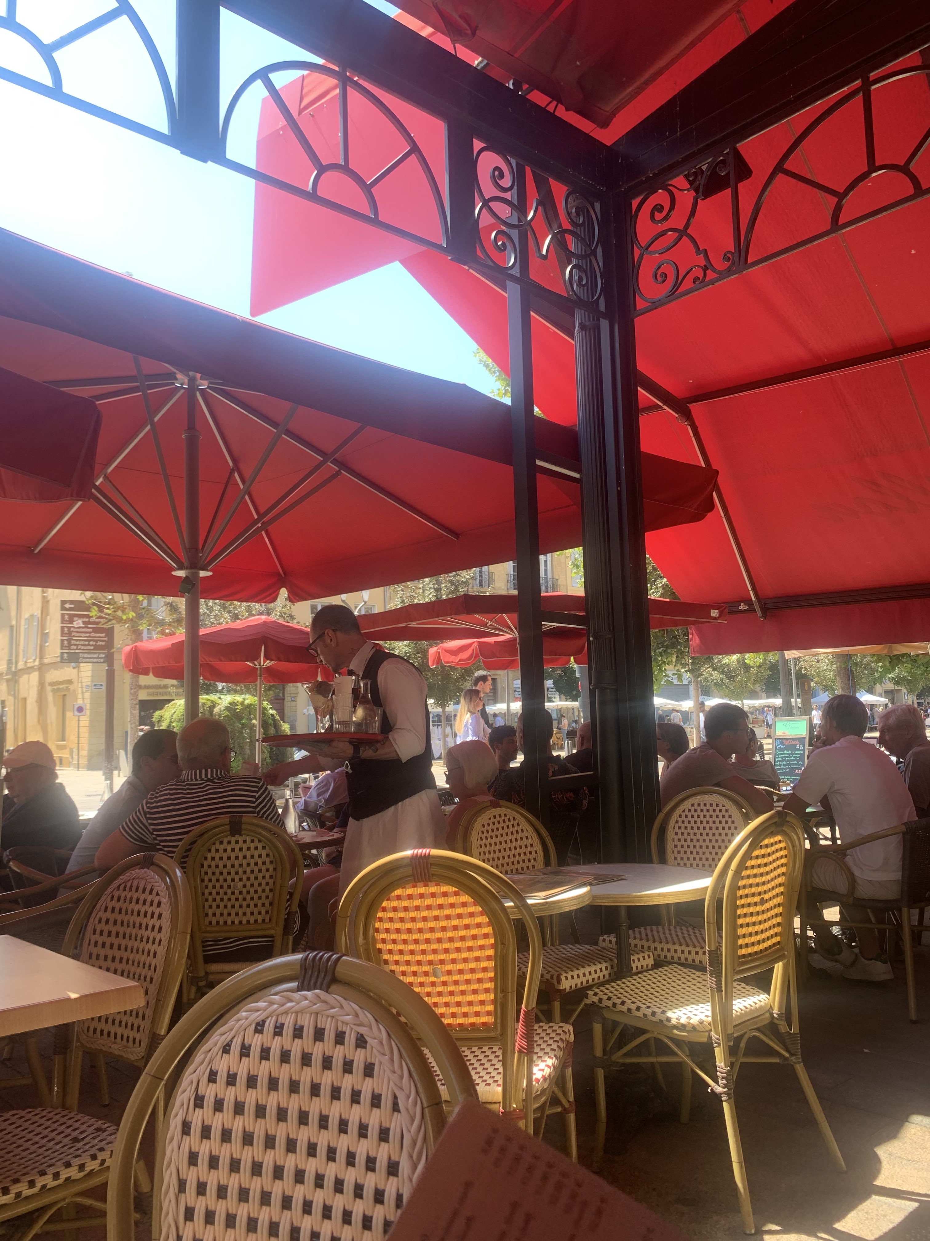 L’endroit mythique du cours Mirabeau, avec les 2 G. Décor rafraîchi à l’identique, à tel point que certains peuvent le trouver daté ... mais on ne change pas un monument historique. Heureusement puisqu'on y vient pour ça ! Serveuse prévenante, efficace et joyeuse. Elle vous apporte immédiatement une carafe d'eau fraîche (d’Aix) et la remplace dès qu'elle est vide. Excellente qualité brasserie.