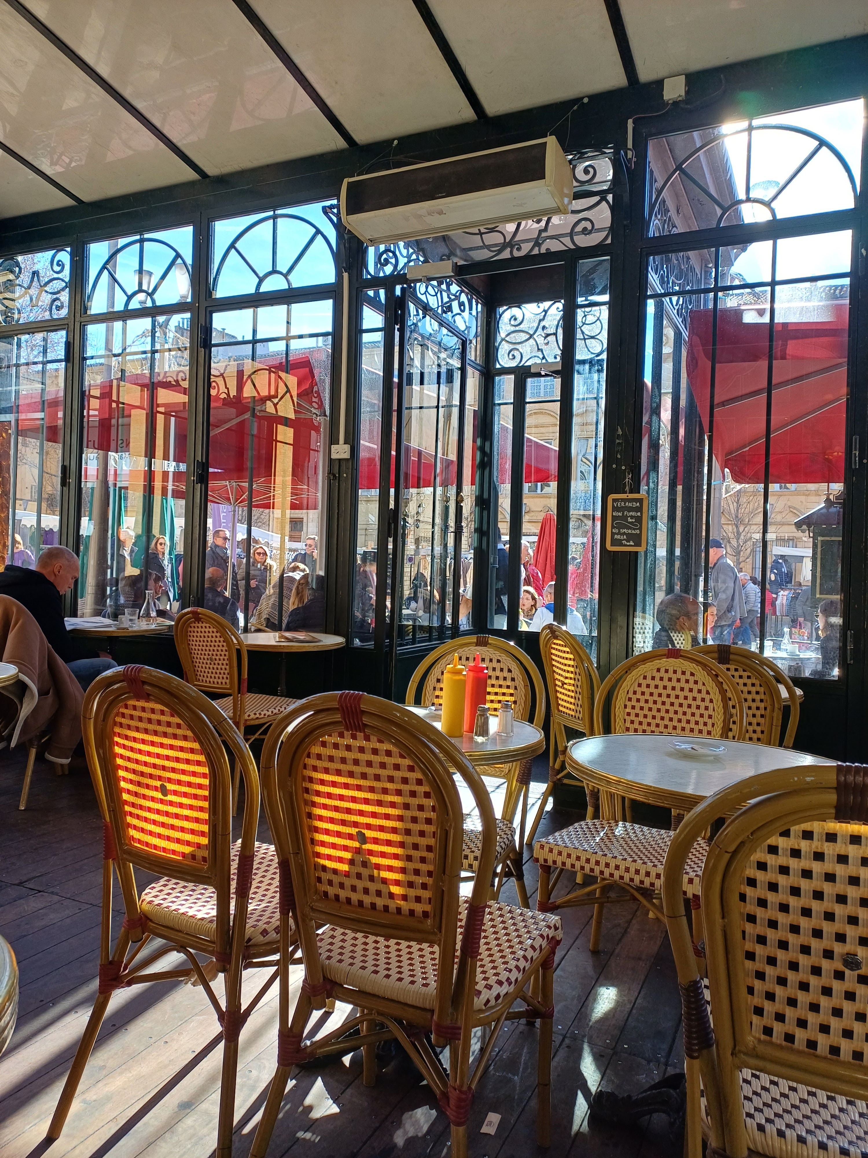 J'ai bien bien bien aimé l'accueil pour les PMR mais avec un bemol les toilettes sont à l'etage mais je reconnais la brasserie est ancienne. Je me suis régalée avec le pan bagnat et la glace aux calissons était excellente.