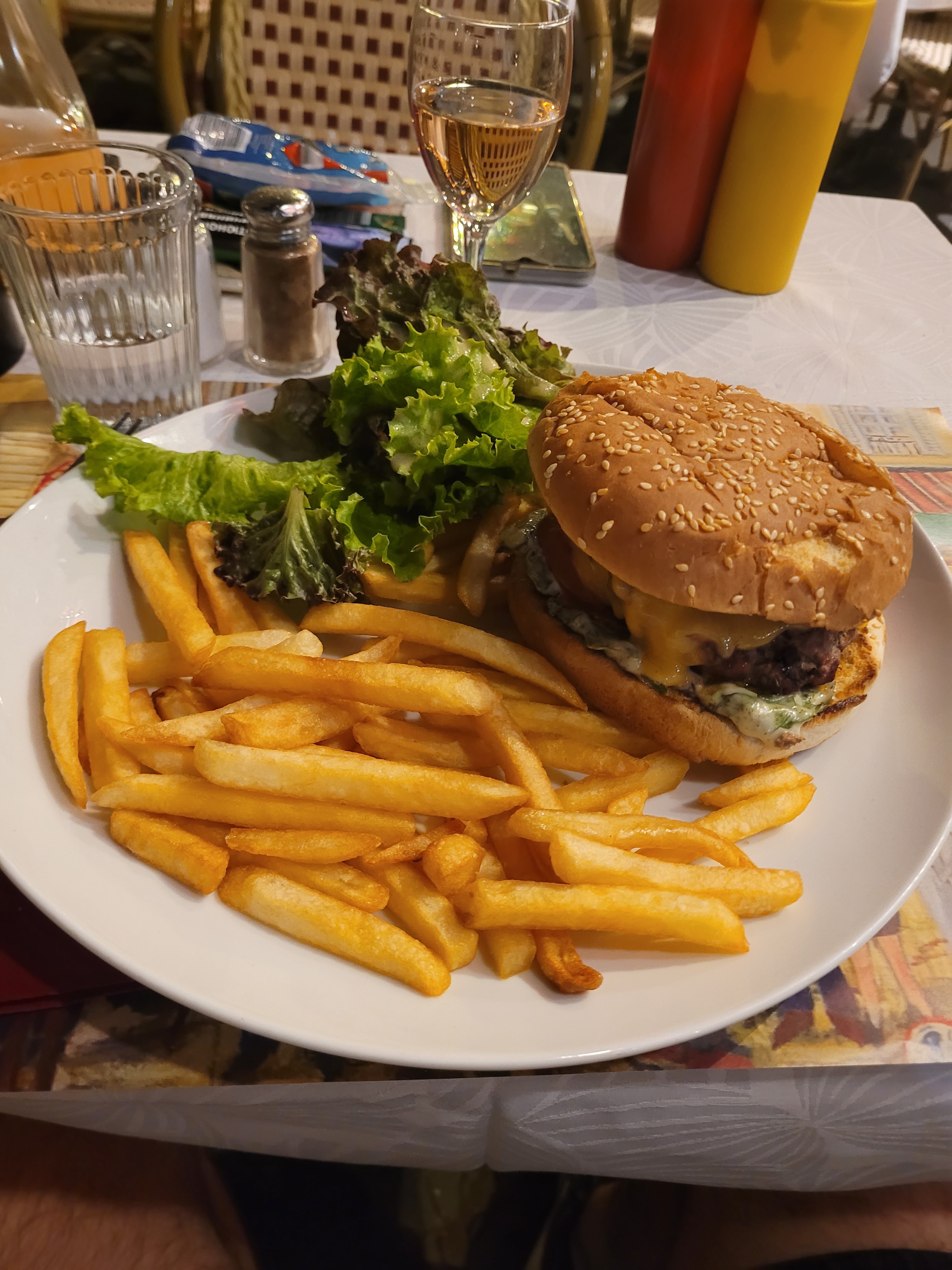 Je me suis trouvé à dîner au Restaurant Au Grillon. Si le service est très agréable et efficace, il en est très différent de ce qui peut sortir de la cuisine. J’ai commandé un burger saignant, j’ai reçu un steak quasi cru dans un bun qui sortait sans aucun doute d’un emballage de supermarché, avec des frites industrielles. Visiblement, rien n’était fait maison. En résumé, un menu qualité MacDo mais quasiment au triple de son prix.