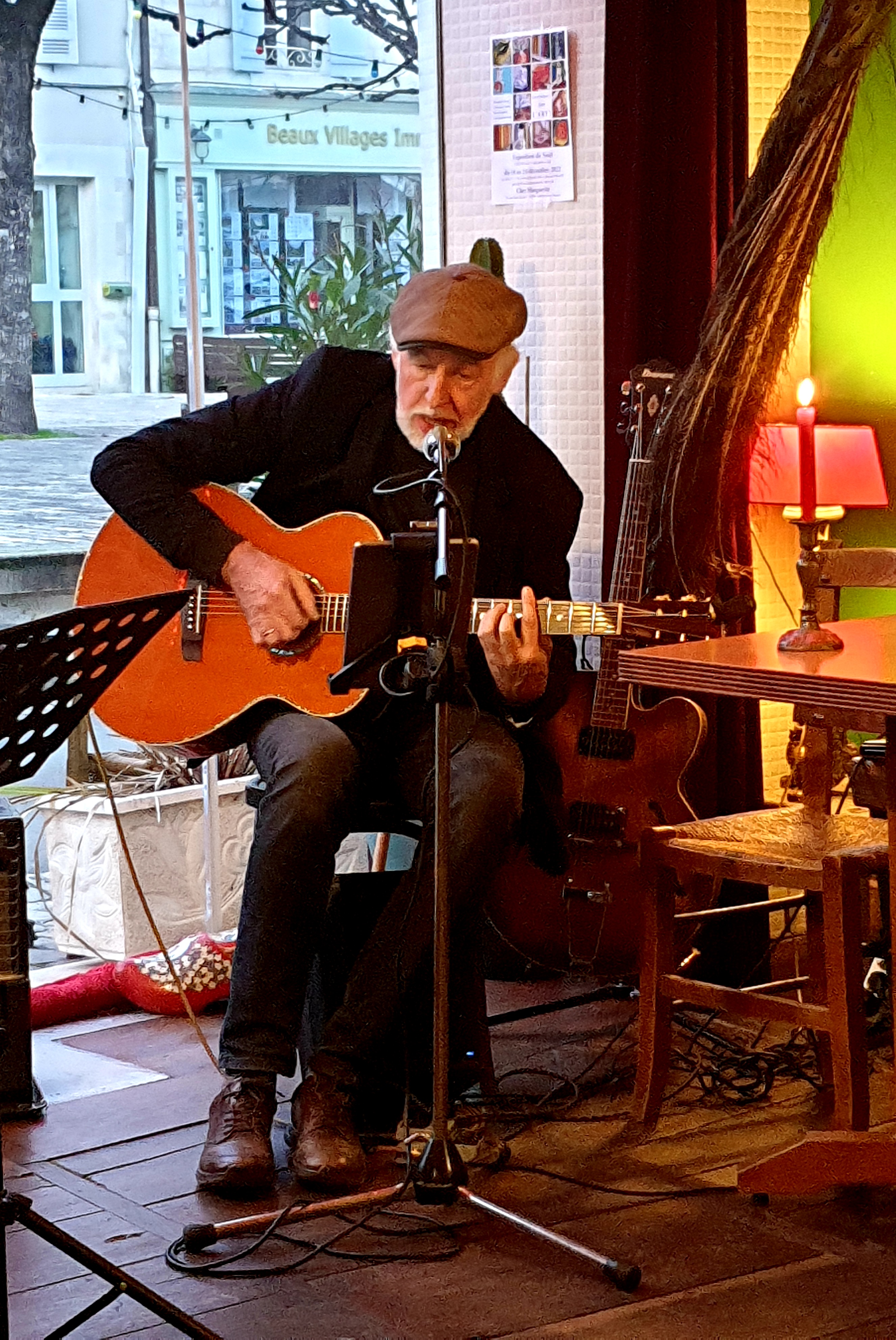 Bel endroit! Super playlist musicale (jazz/swing) et ambiance et propriétaire et personnel très sympathiques sur la place de la ville d'Aubeterre. Goose Island à la pression est également un bonus !