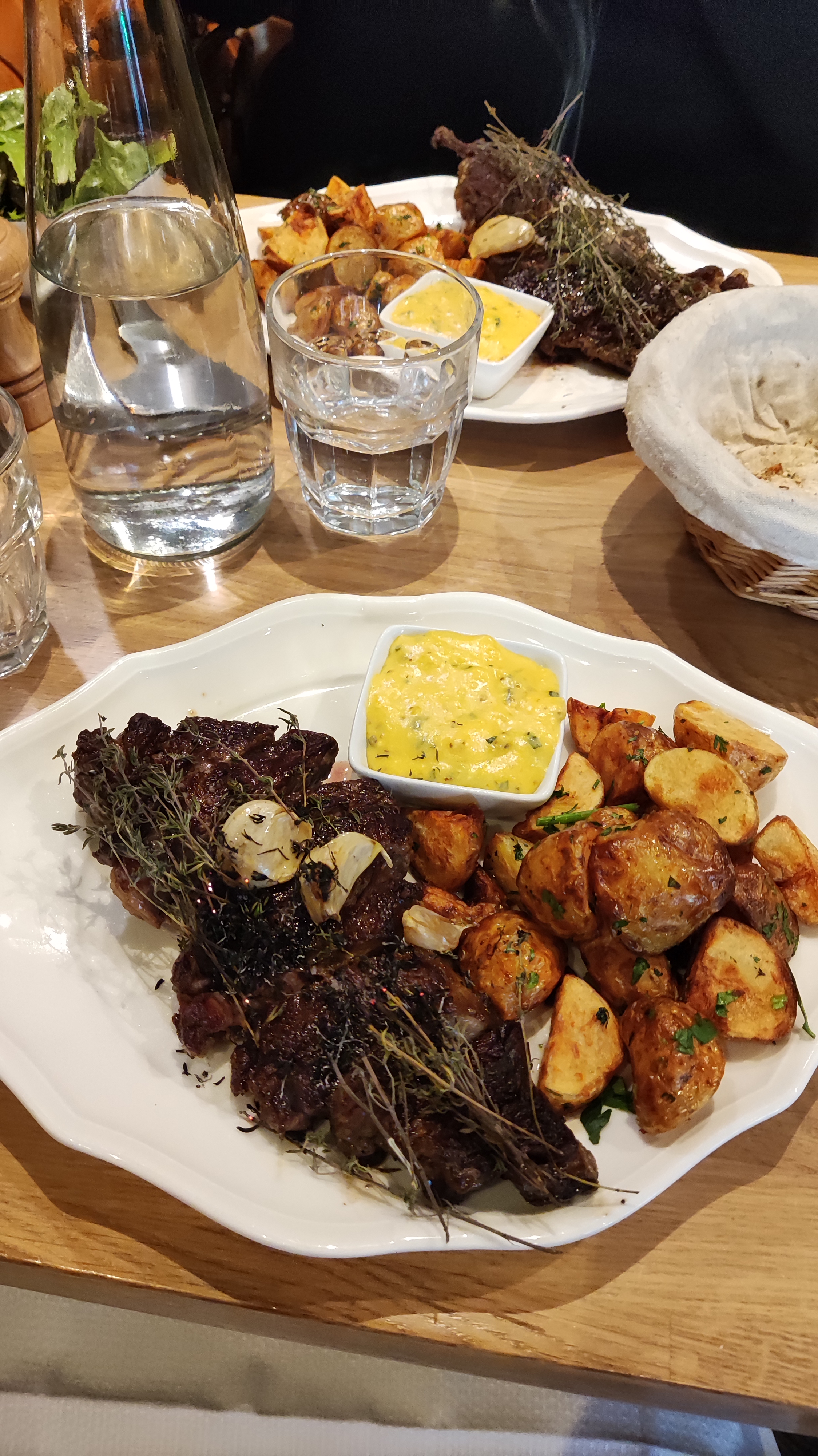 Serveur efficace. Paleron de boeuf au goût correct mais servi tiède. Grosse déception sur la qualité des légumes. Pain brûlé (noirci). Je n'ai pas eu envie de prendre un dessert du coup. Cher pour la qualité des aliments proposés.