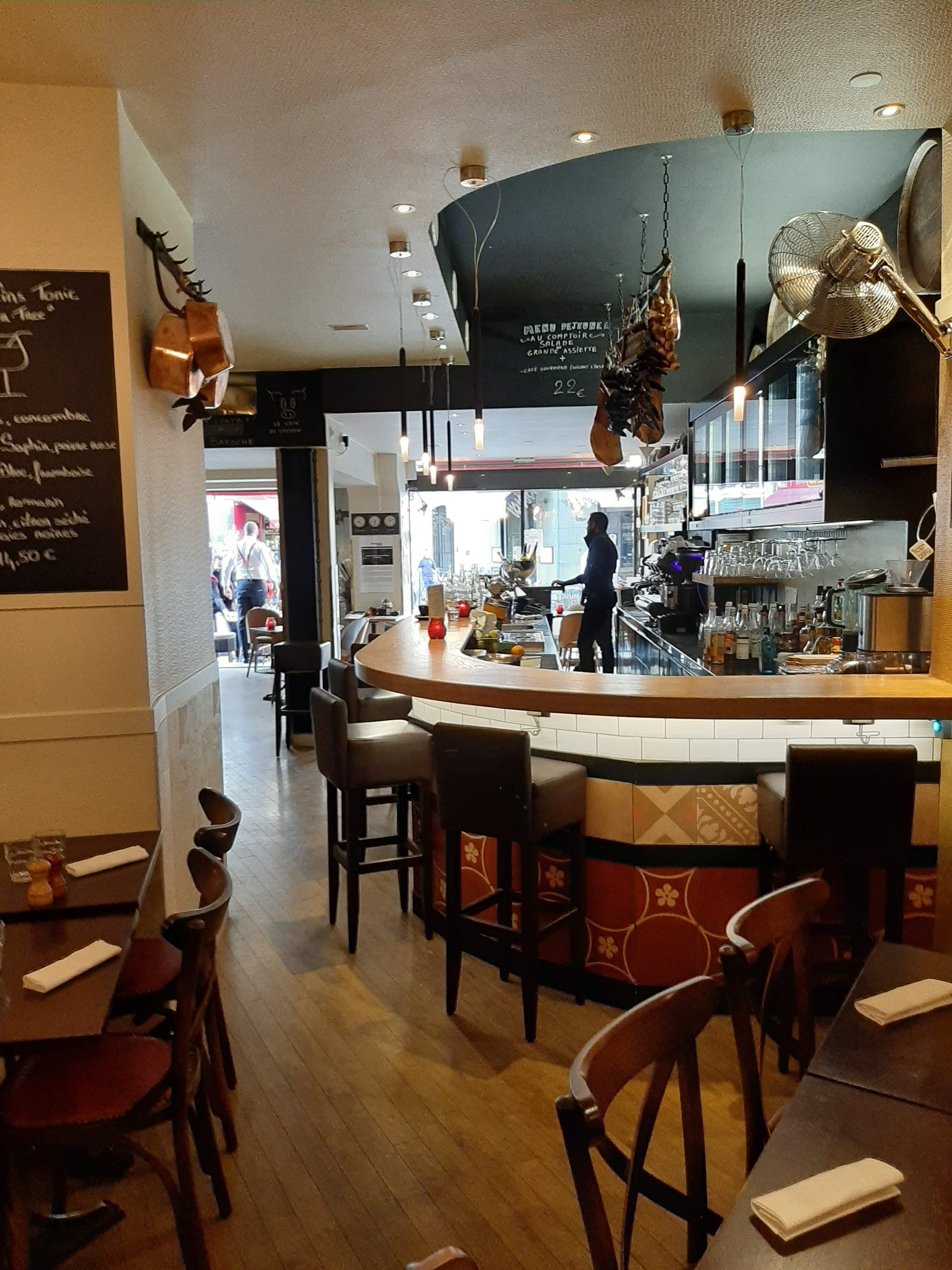 Venus 3 fois en 2 mois, 2 fois bien avec une serveuse gentille, et la dernière fois décevante. Nous avons ressenti un jugement à notre égard de la part du serveur. Comme si cela allait de soit de savoir que le pâté en croute n'était plus disponible. Nous a pris plutôt de haut et a jasé auprès de ses collègues, quand nous avons dit que nous ne souhaitions pas de pain et ne buvions pas d'alcool. Il a essayé sur la fin de faire copain copain, peut-être car nous avions laissé comprendre que son jugement de nos choix personnels, nous surprenait. La prochaine fois, dans le quartier, nous essaierons un autre restaurant.