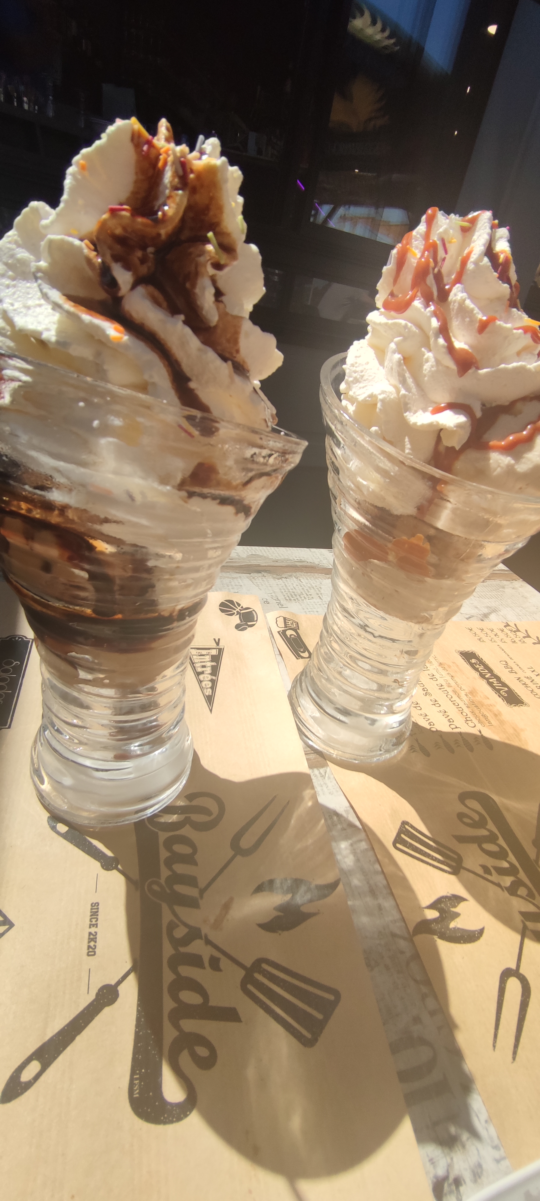 Belle façade et belle terrasse ,nous avons commandé moule/ frites arrivé sur la table froide et avant même d avoir commencé notre apéro, moule trop cuites et en bouillie à fuir. Prix des desserts exorbitants