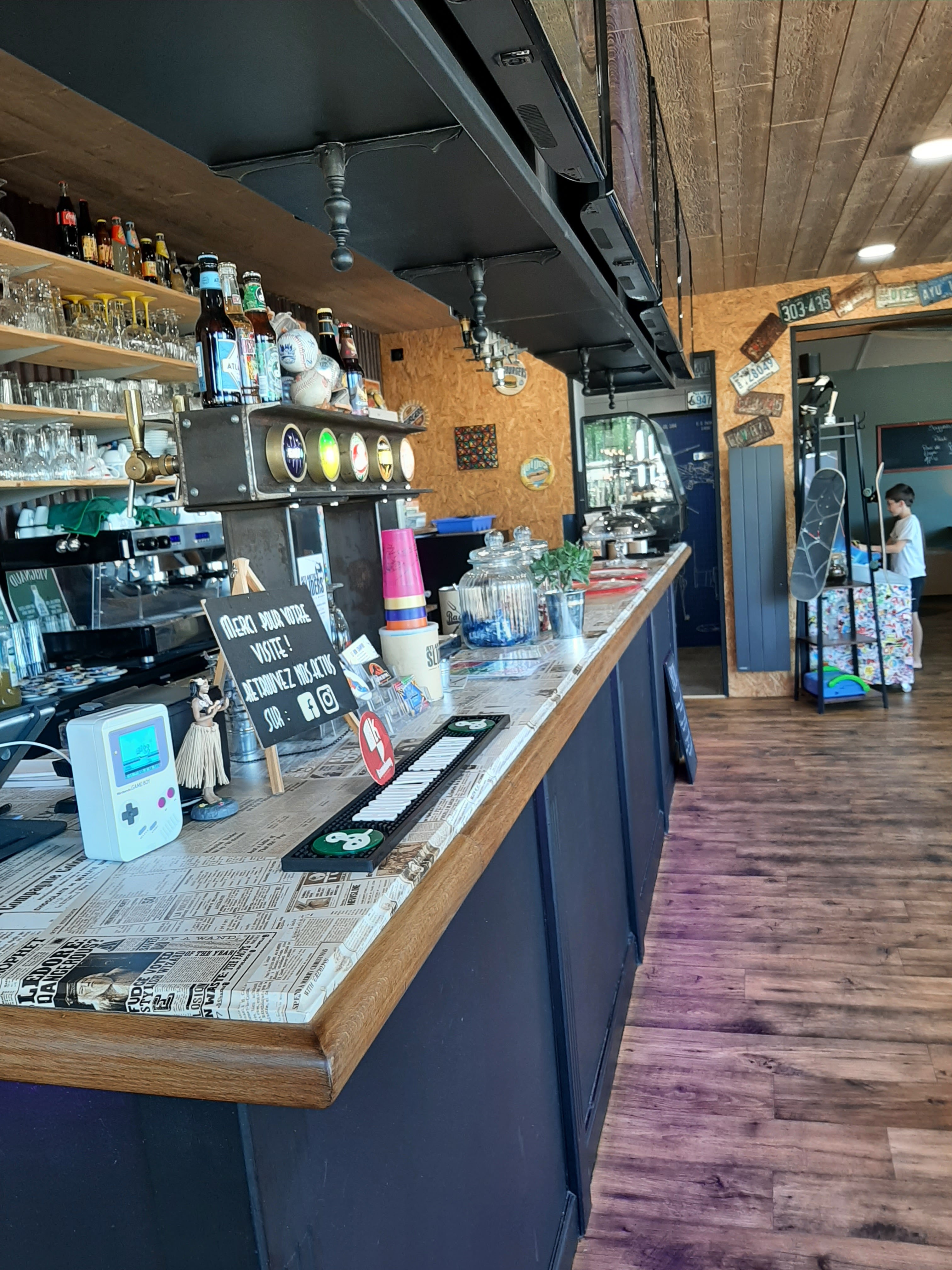 super décoration. Très belle rénovation. Niveau repas bon. Le burger bien mais dommage que le pain et les frites ne soit pas fait maison. Nous avons pris des pizzas à emportés. Nous sommes ravis. Hyper grande et sa se sent qu'elles sont faites maison. Tout le monde étaient ravis